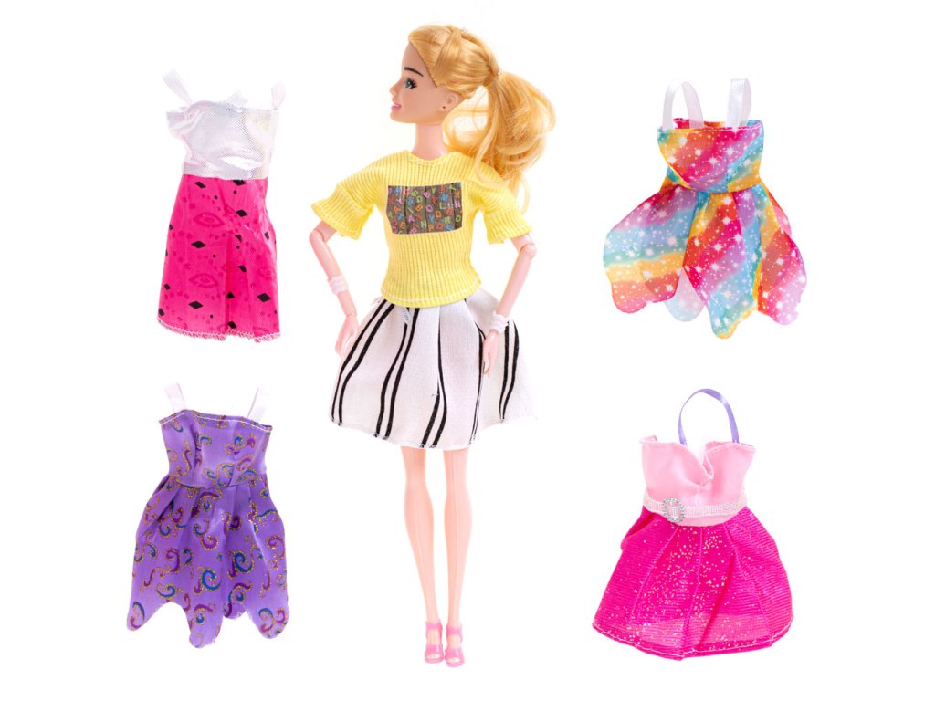 Súprava obsahuje štyri rôzne výtvory. Možno sa vaša bábika chystá na prechádzku, na rande alebo na banket? Bude mať pripravené oblečenie na každú príležitosť! Bábika je vysoká 30 cm, takže sa dokonale hodí do všetkých bežných šiat pre bábiky tohto typu mimo súpravy. To vám umožní obliekať ju podľa vlastného uváženia a vytvárať ďalšie a ďalšie zaujímavé outfity! Určite to hre dodá veľa vzrušenia!