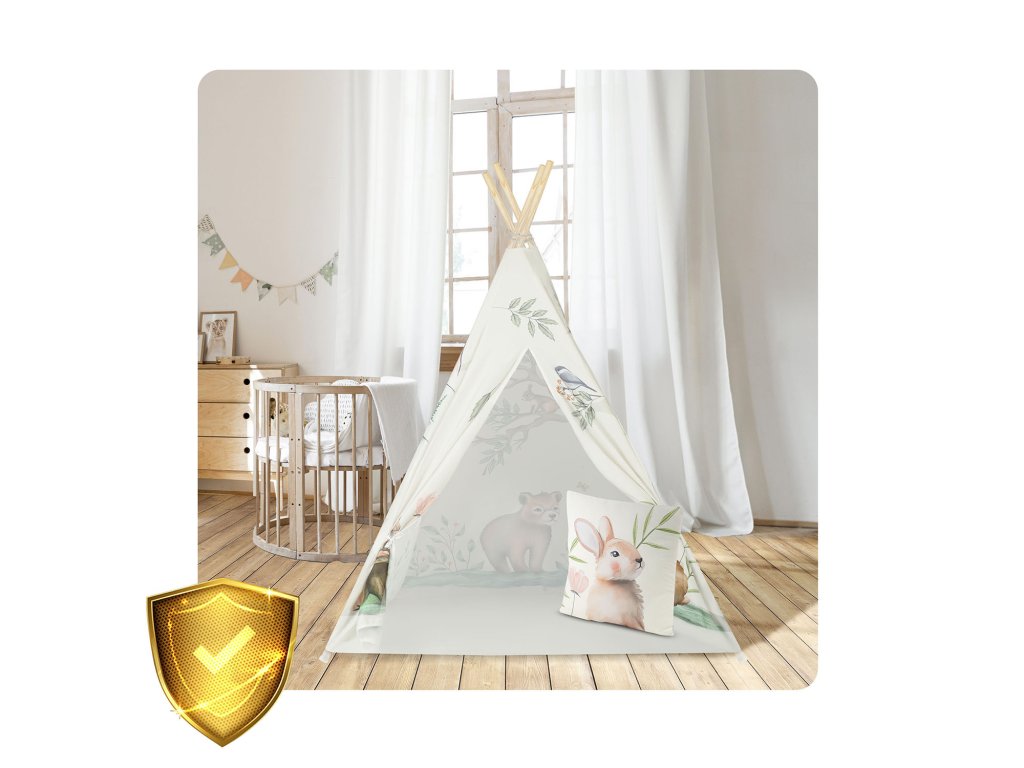 Pri výrobkoch pre deti má zmysel vyberať odolné materiály najvyššej kvality. Preto bolo naše tipi ušité z bezpečné prémiové certifikované materiály.