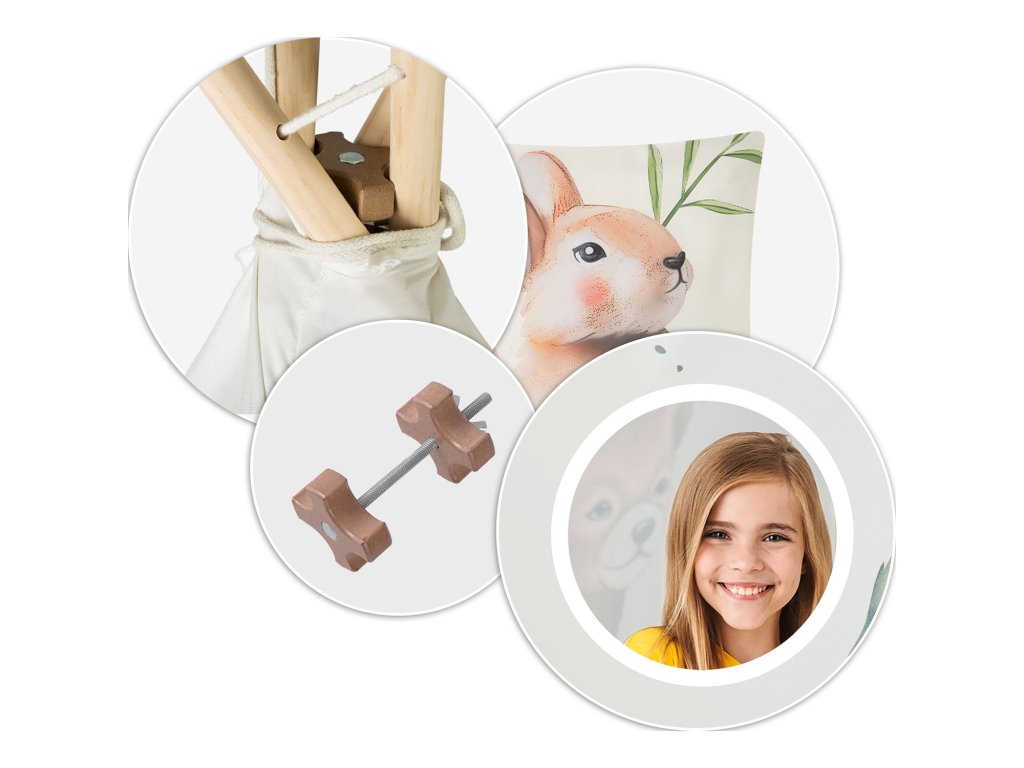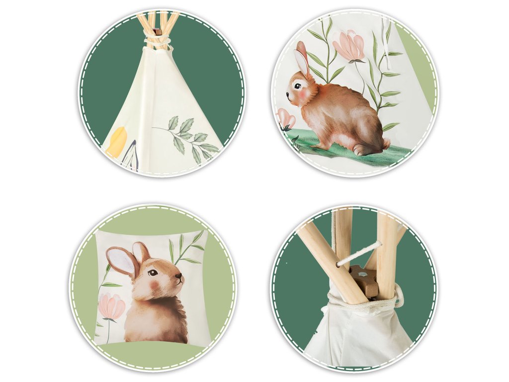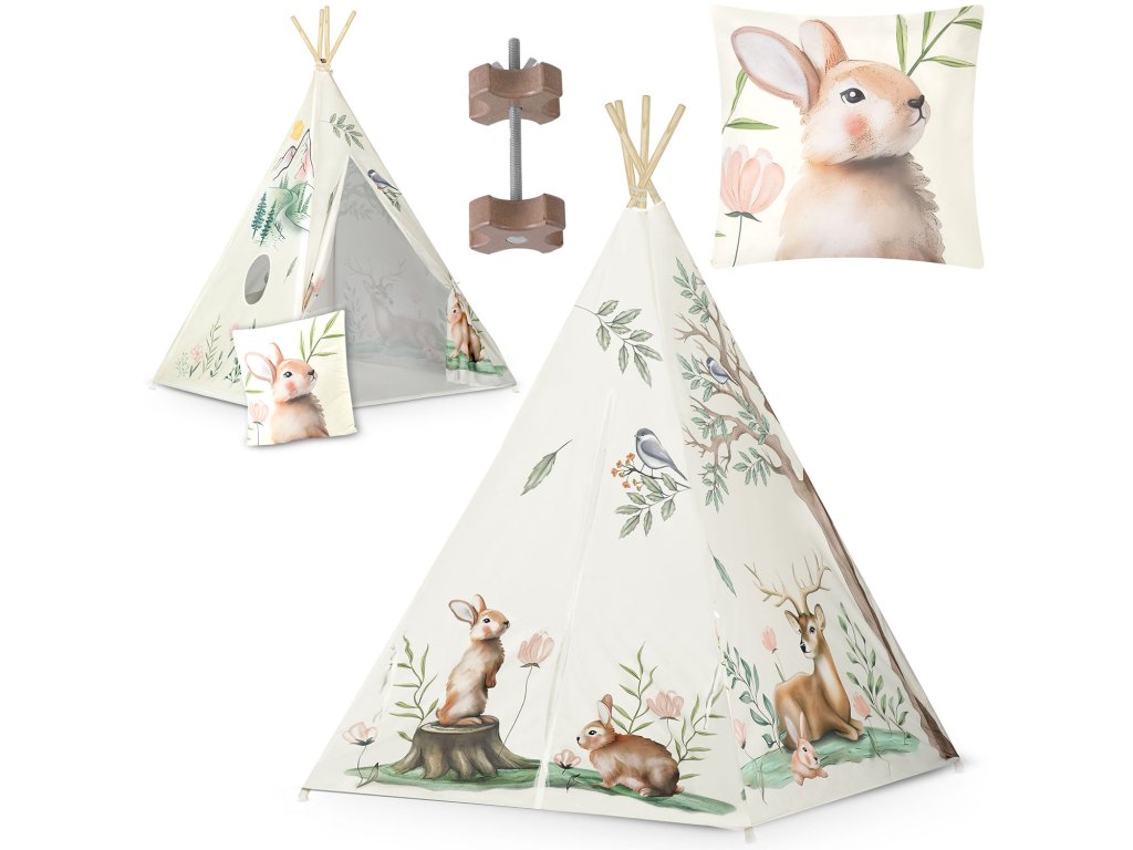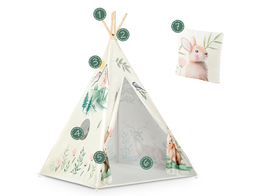 Každý TIPI sa dodáva s krásny vankúšik so zajačikom a stabilizátorom, ako je vidieť na obrázku!