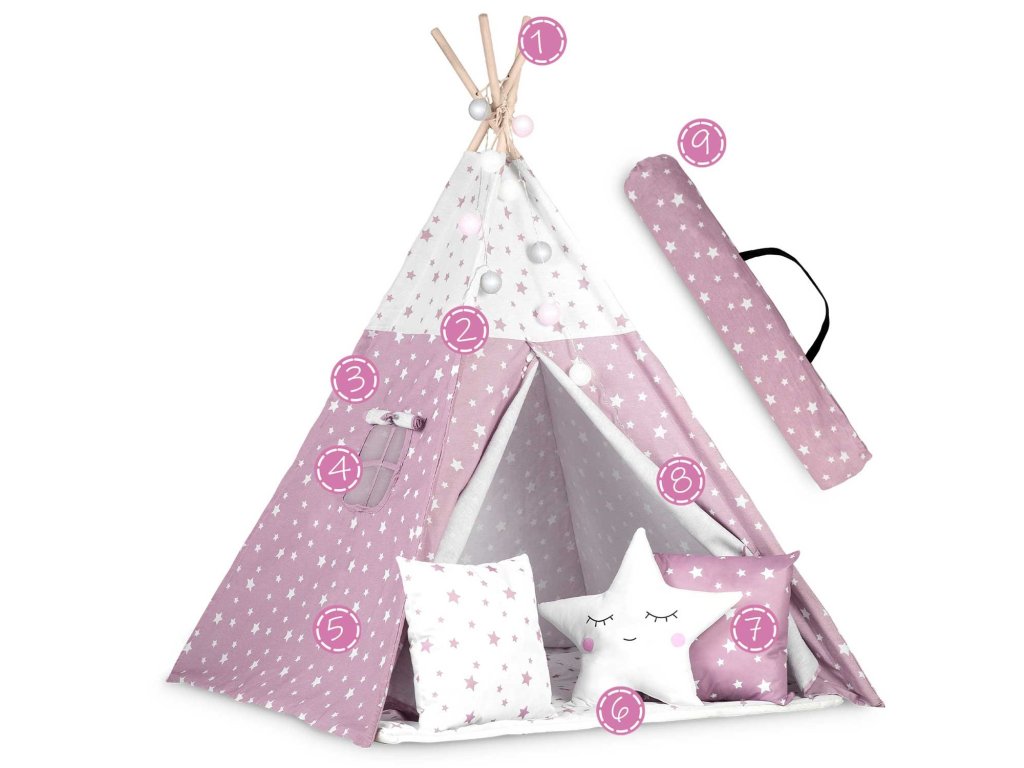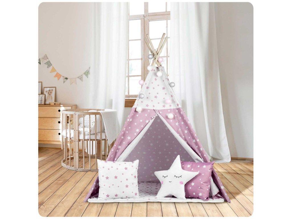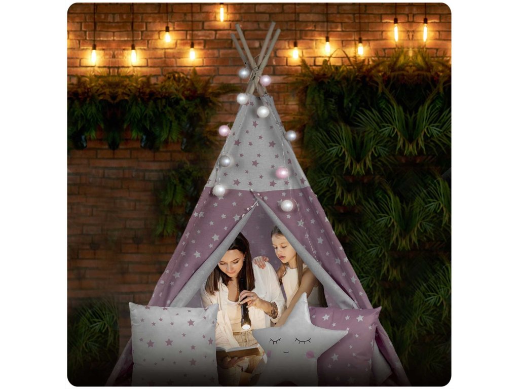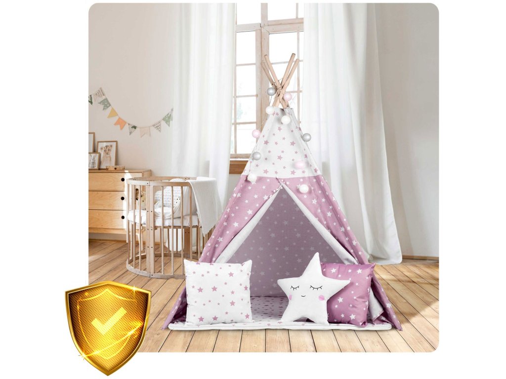 Aby bolo hranie ešte zábavnejšie, tipi sa dodáva s vankúše z kvalitnej bavlny a izolačná podložka s protišmykovými výstupkami.