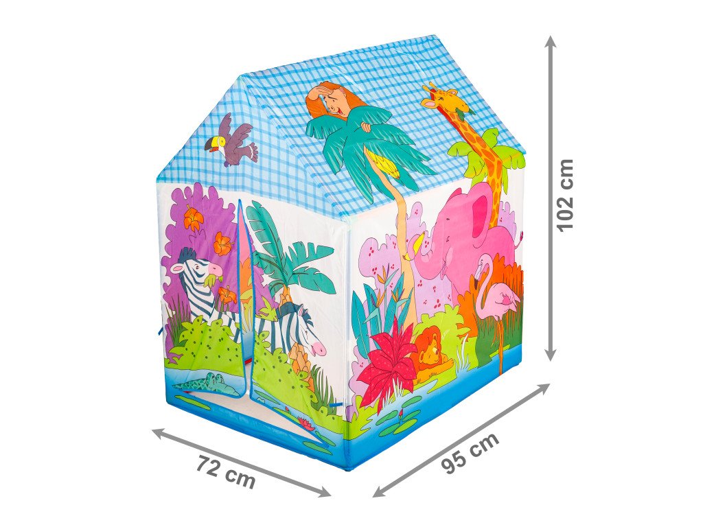 Stan ponúka možnosť nezabudnuteľnej hry v interiéri aj exteriéri. Pre vaše dieťa bude dokonalou skrýšou!Živé farby a pestré obrázky zaujme každé batoľa a urobí hru ešte zaujímavejšou. Tvar výrobku pripomína domček - má striešku. Stan je praktický a ľahko sa skladá. Vďaka svojmu ľahkému rámu ľahko sa prenáša z miesta na miesto.