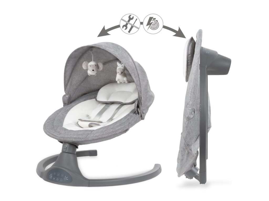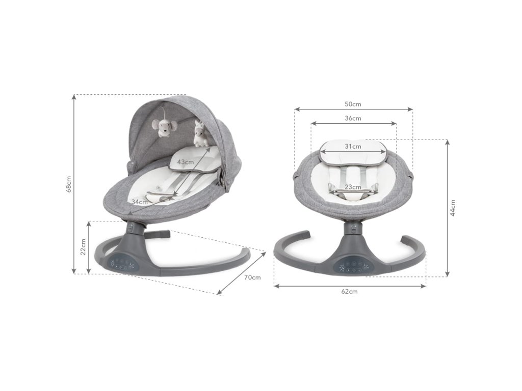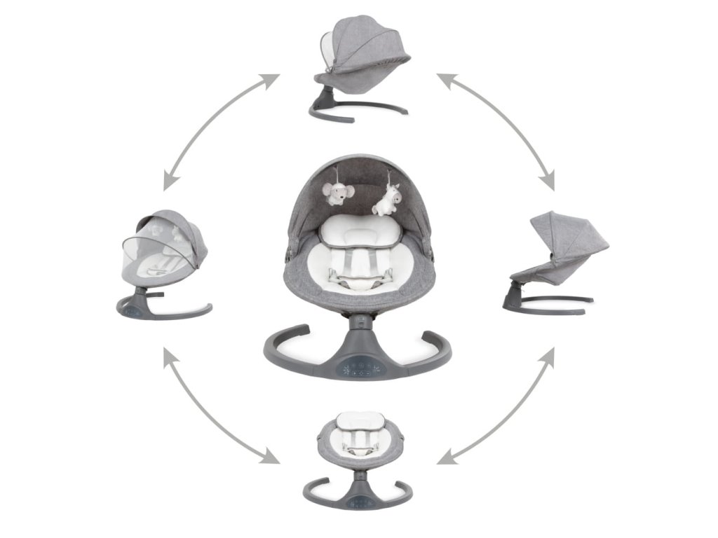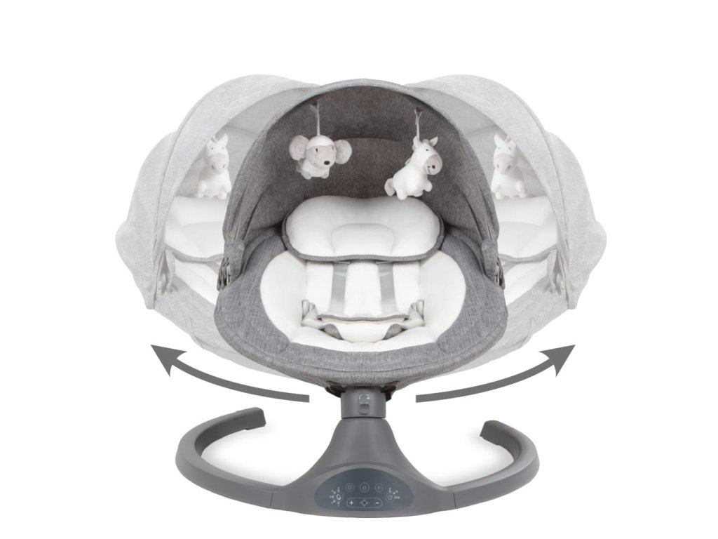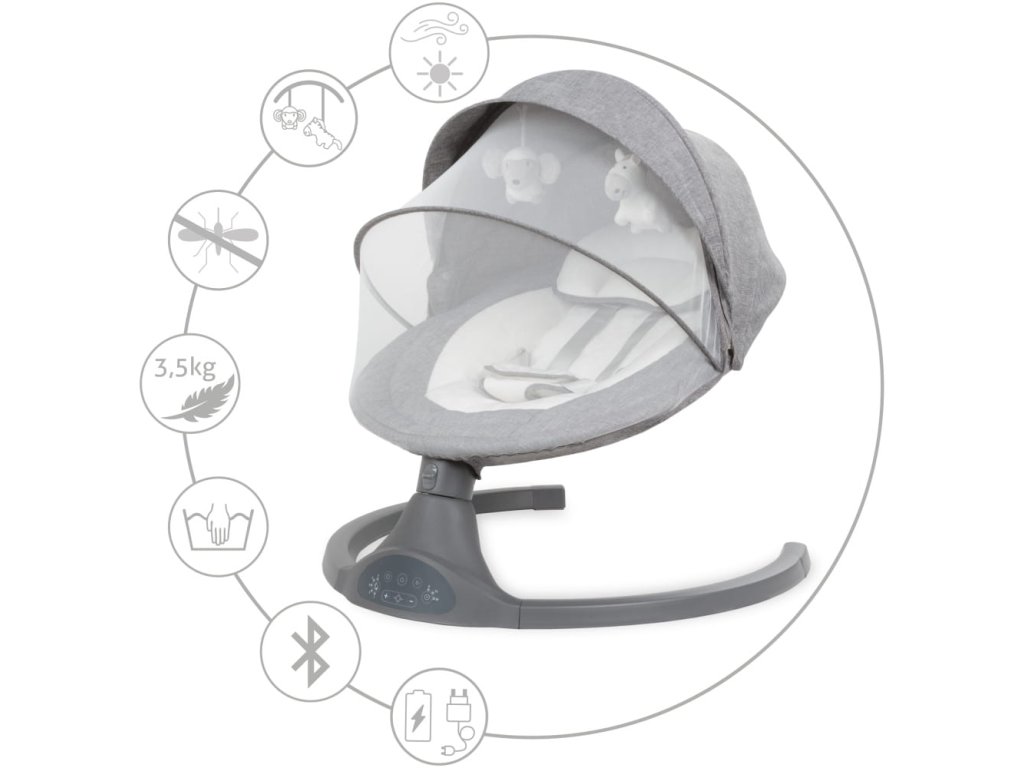 - Pripojená strieška ochráni vaše dieťa pred nechcenými podnetmi – prievanom, slnkom, nadmerným pohybom a je ideálna na používanie hojdačky na terase alebo balkóne.