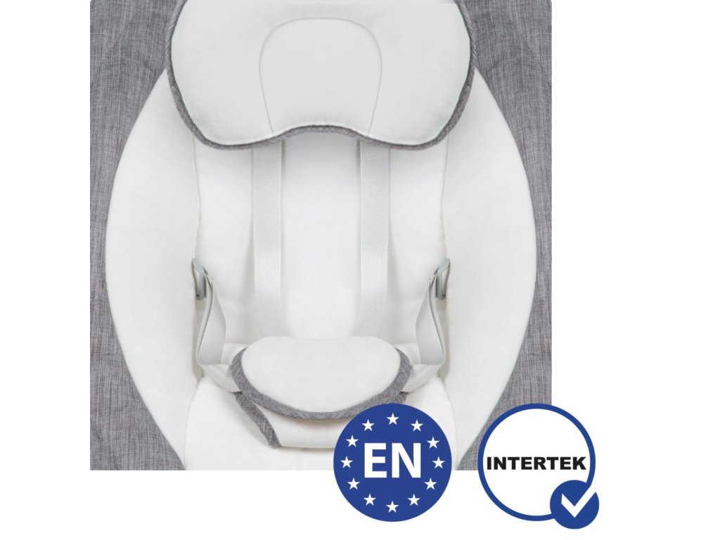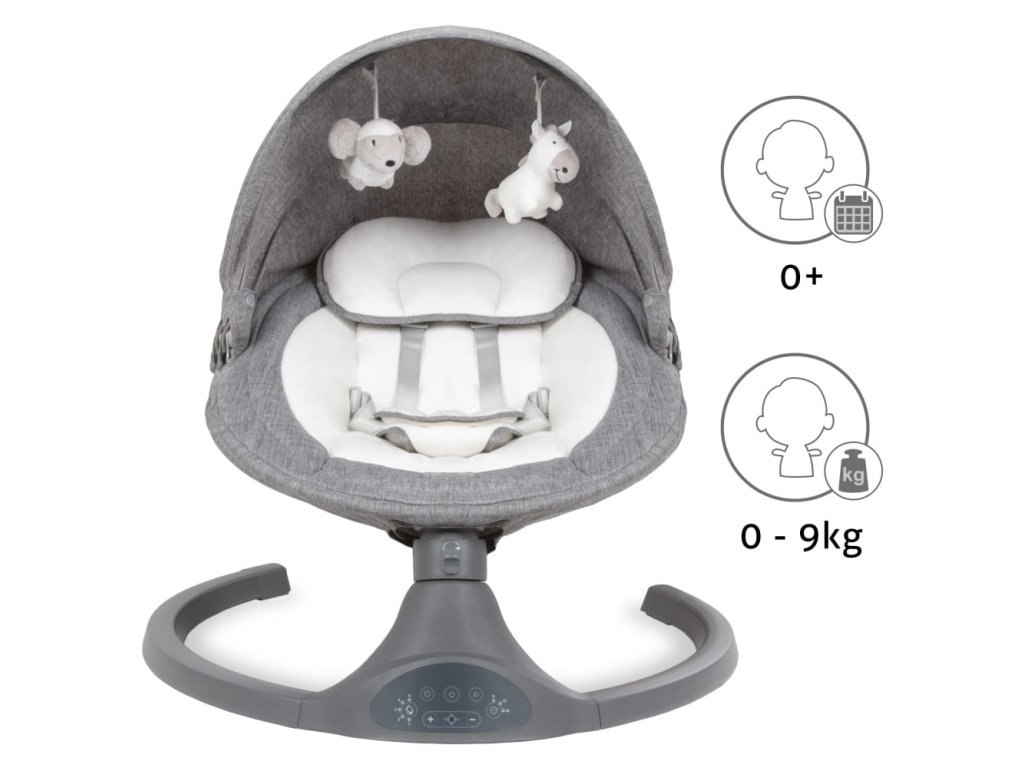 - Stabilná a ľahká (3,5 kg) konštrukcia z hliníka a ocele umožňuje bezpečné používanie hojdačky, kým dieťa nedosiahne hmotnosť 9 kg