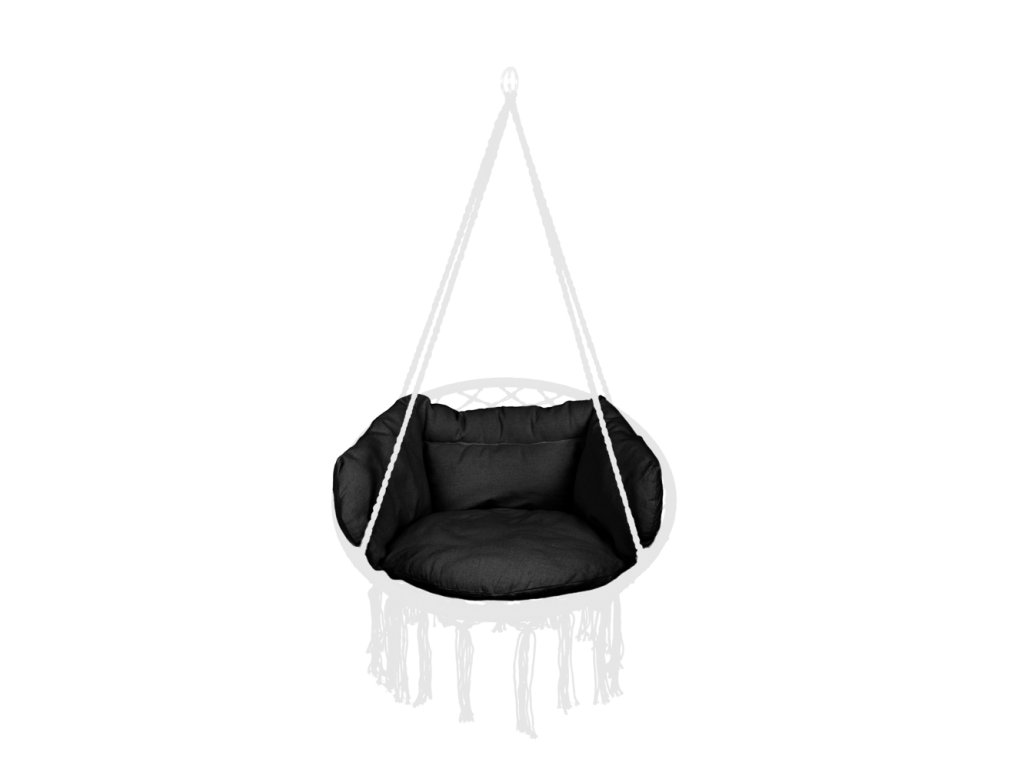 Vankúš sa skladá zo štyroch vzájomne prepojených prvkov - sedadla, operadla a dvoch bočných prvkov. Vankúš je vyrobený zo štyroch prepojených prvkov (sedadlo, operadlo a dva bočné prvky) a zaručuje dokonalé prispôsobenie sa hojdačke. A vďaka mäkkej výplni je rám nepostrehnuteľný a vy sa môžete oddávať bezstarostnému odpočinku. Pri výrobe vankúša boli použité vysokokvalitné materiály, ktoré zaručujú jeho trvanlivosť a odolnosť voči op otrebovaniu. Obliečka na vankúš vyrobená zo zmesi bavlny (65 %) a polyesteru (35 % ) je mäkká a ľahko sa čistí. Čierna farba dokonale ladí so svetlými hojdačkami a dodáva im elegantný nádych.