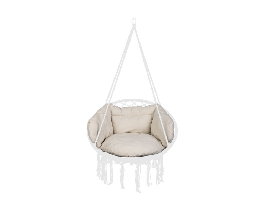 Vankúš sa skladá zo štyroch vzájomne prepojených prvkov - sedadla, operadla a dvoch bočných prvkov. Vankúš je vyrobený zo štyroch prepojených prvkov (sedadlo, operadlo a dva bočné prvky) a zaručuje dokonalé prispôsobenie sa hojdačke. A vďaka mäkkej výplni je rám nepostrehnuteľný a vy sa môžete oddávať bezstarostnému odpočinku. Pri výrobe vankúša boli použité vysokokvalitné materiály, ktoré zaručujú jeho trvanlivosť a odolnosť voči op otrebovaniu. Obliečka na vankúš vyrobená zo zmesi bavlny (65 %) a polyesteru (35 % ) je mäkká a ľahko sa čistí. Farba ecru dokonale ladí so svetlými hojdačkami a dodáva im elegantný nádych.
