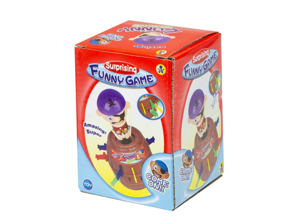 Veselá rodinná hra so súťaživým duchom! Umiestnite meče do suda a vyhnite sa bodnutiu piráta. Rozvíja logiku a zábavu. Ideálny darček v krásnej krabičke. Rozmery: Hlaveň: 9x6 cm, Pirát: 6cm, Meč: 5x1 cm. Balenie: 12,5x9x9 cm. POZOR: Dizajn balenia sa môže líšiť.