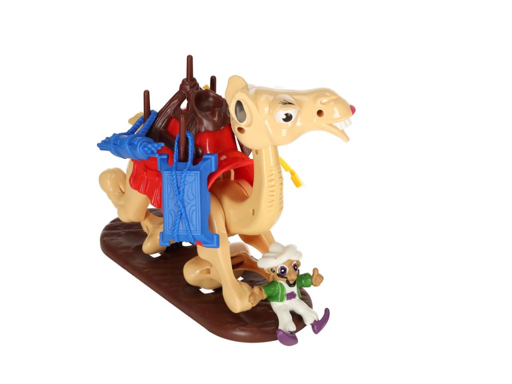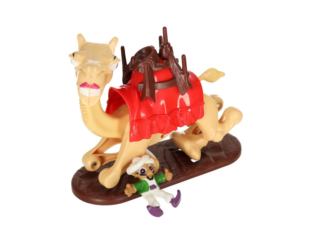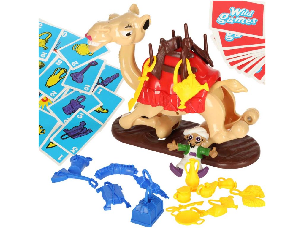 A o čo presne v hre ide? V súprave nájdete rôzne predmety a karty, ako aj skladacieho ťavu, ktorého treba na začiatku hry umiestniť do polohy ležmo. Každý hráč si potom postupne vytiahne jednu kartu, a ak predstavuje nejaký predmet, umiestni ju na sedlo!