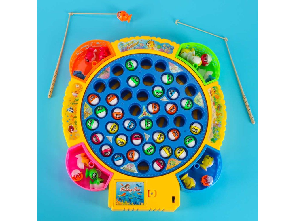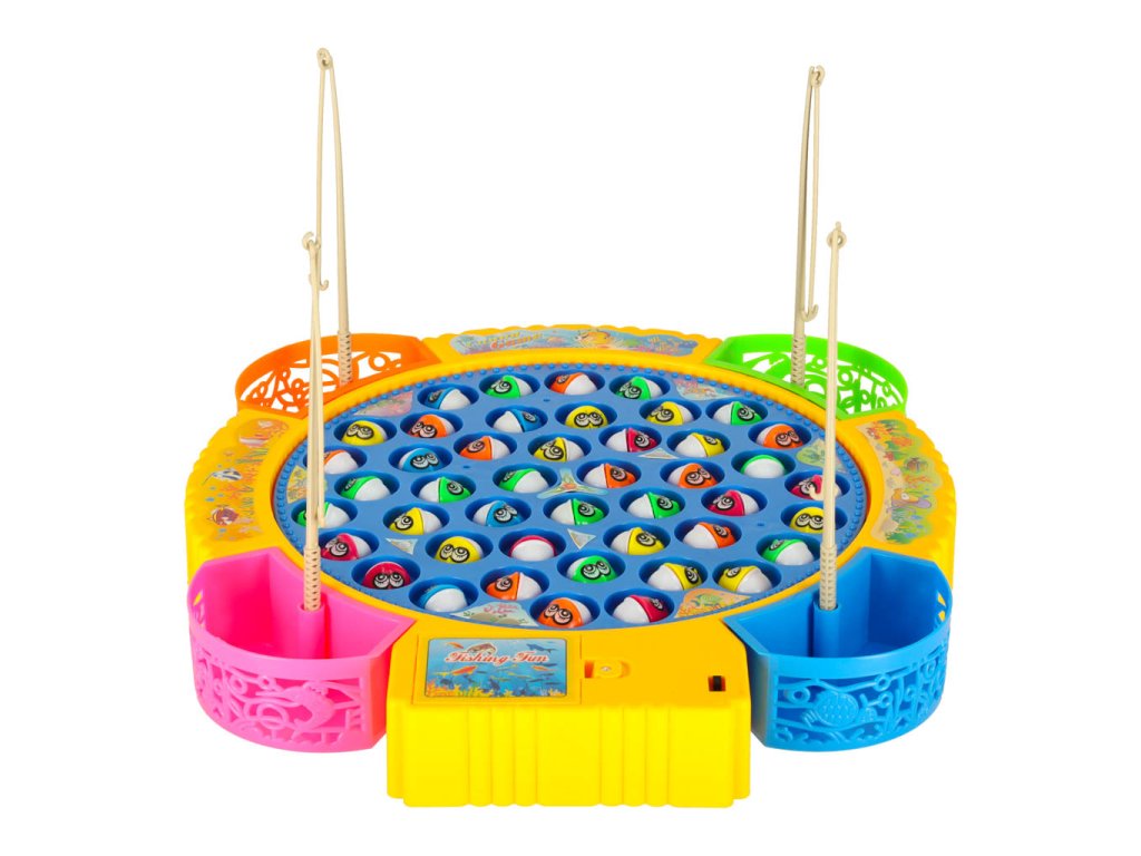 Vyhráva ten, kto rybárskym prútom uloví čo najviac rýb, ktoré plávajú - točia sa po celej plošine.
