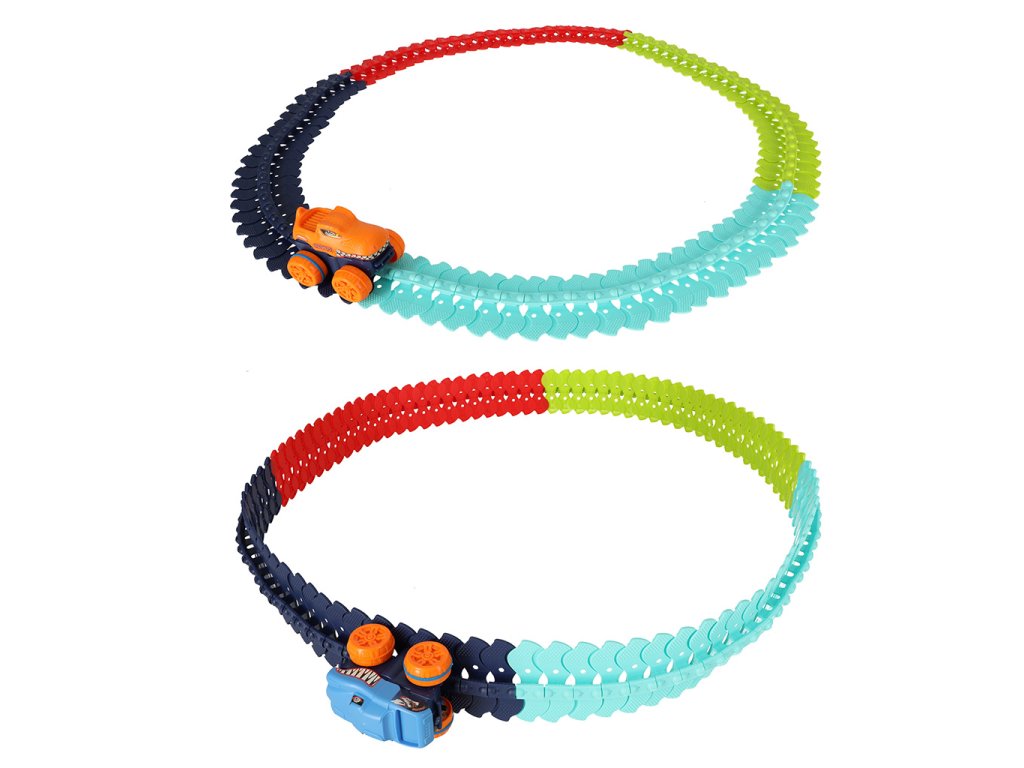 Súprava sa skladá z 96 kociek v štyroch farbách, ktoré vhodne pospájané tvoria flexibilnú dráhu, po ktorej bude autíčko jazdiť závratnou rýchlosťou. Nebojí sa ostrých zákrut ani jazdy do kopca - zvládne každú výzvu!