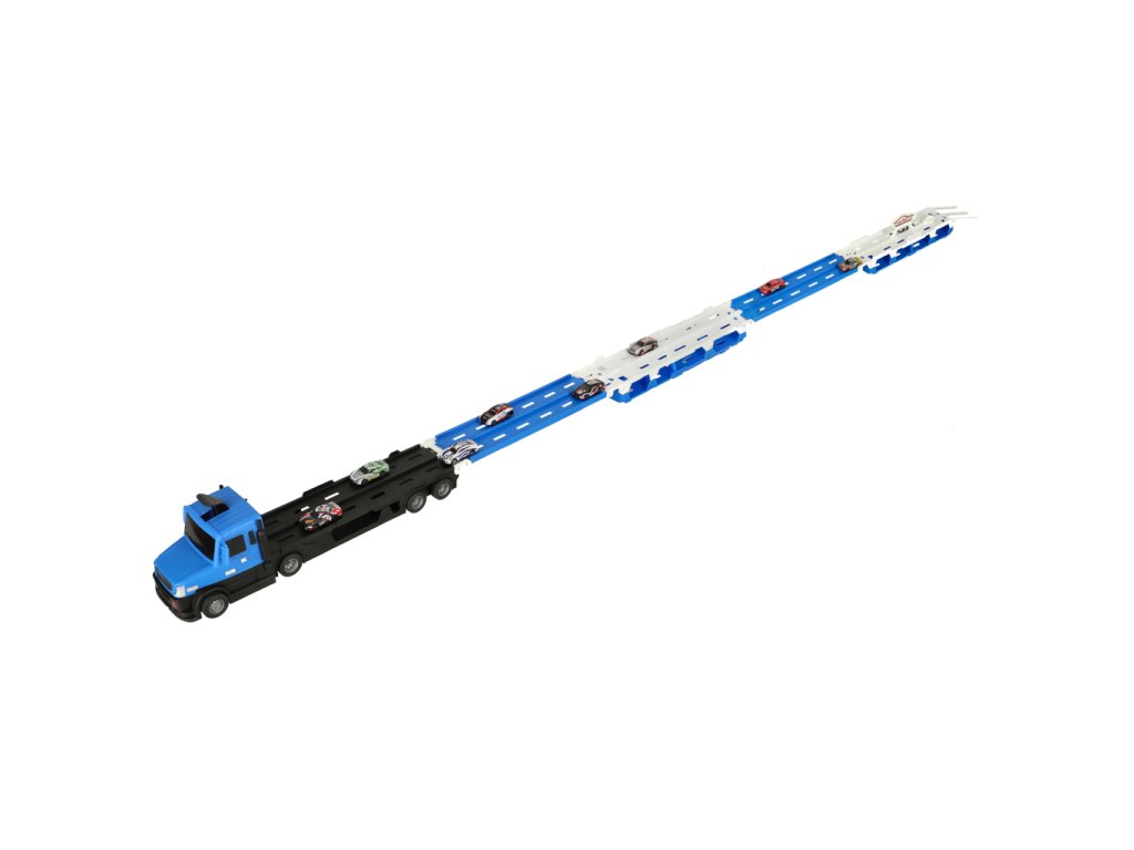 - Unikátna sada - balenie obsahuje všetko, čo potrebujete pre fantastickú zábavu: príves, pretekársku dráhu a 10 áut