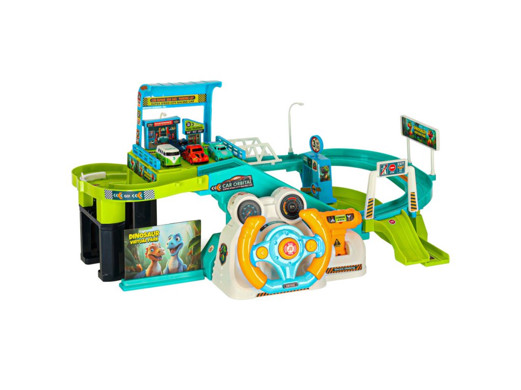 Parkovacia garáž s autodráhou dinosaurus 4 autá