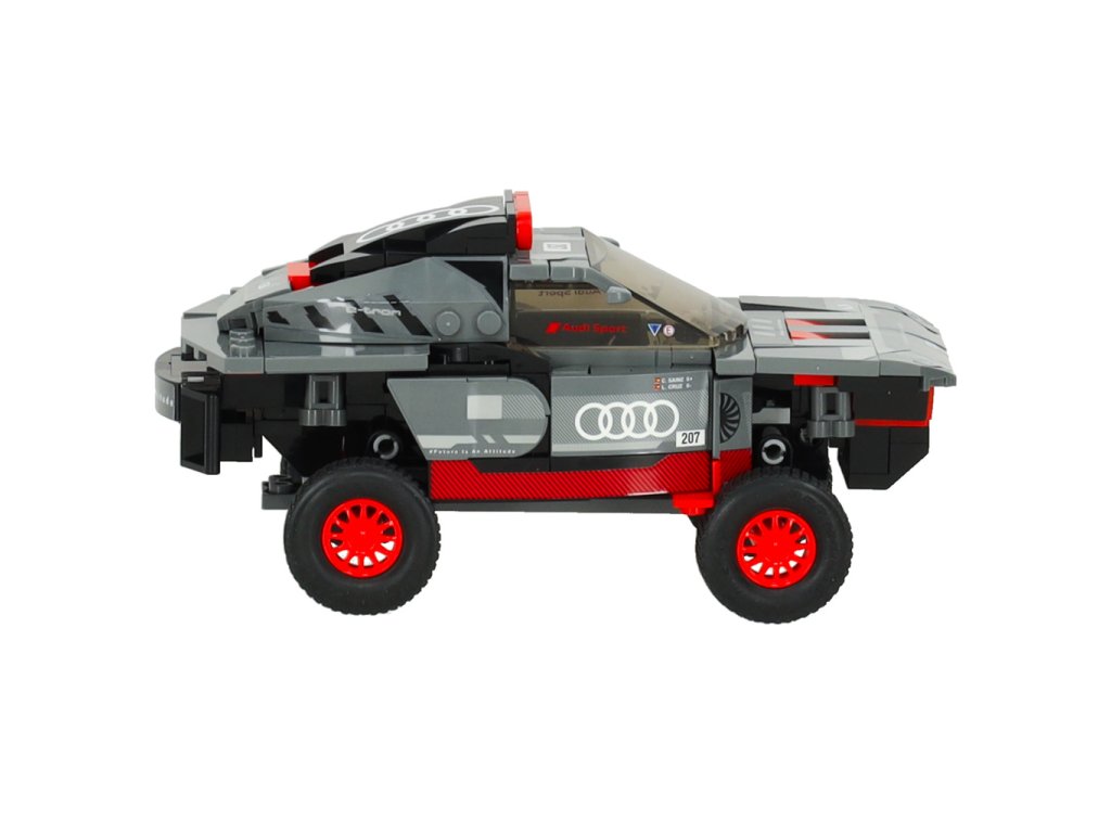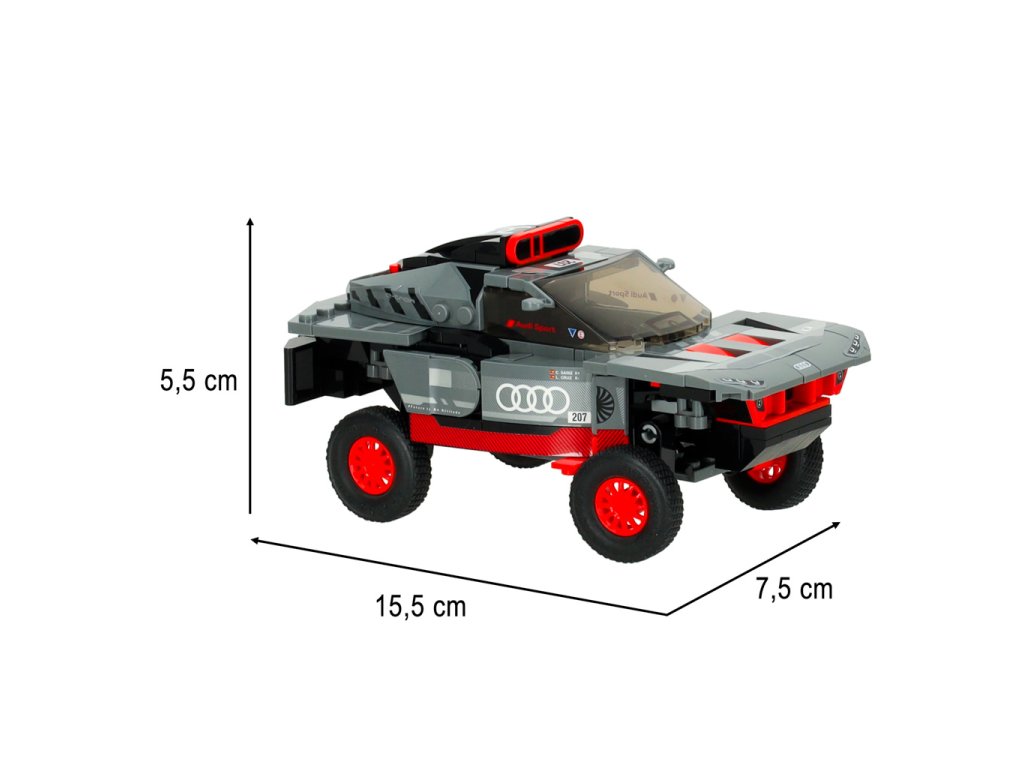 Súprava 376 tehličiek umožňuje zostaviť kultové športové vozidlo Audi RS Q e-tron v mierke 1:30. Vďaka tomu sa hotový model stane nielen atraktívnou hračkou, ale aj skvelým dekoračným prvkom, ktorý je ideálny na vystavenie na poličke každého automobilového fanúšika.