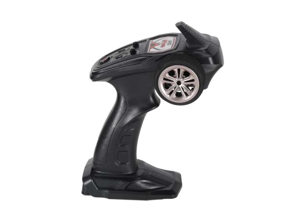 Na riadenie modelu slúži pohodlný ovládač s postupným ovládaním akcelerátora a uhla natočenia volantu - to vám umožní zabezpečiť, aby ste každú zákrutu prešli s úplnou presnosťou a sledovali čo najoptimálnejšiu líniu. Je napájaný tromi batériami AA, takže ich môžete v okamihu vymeniť!