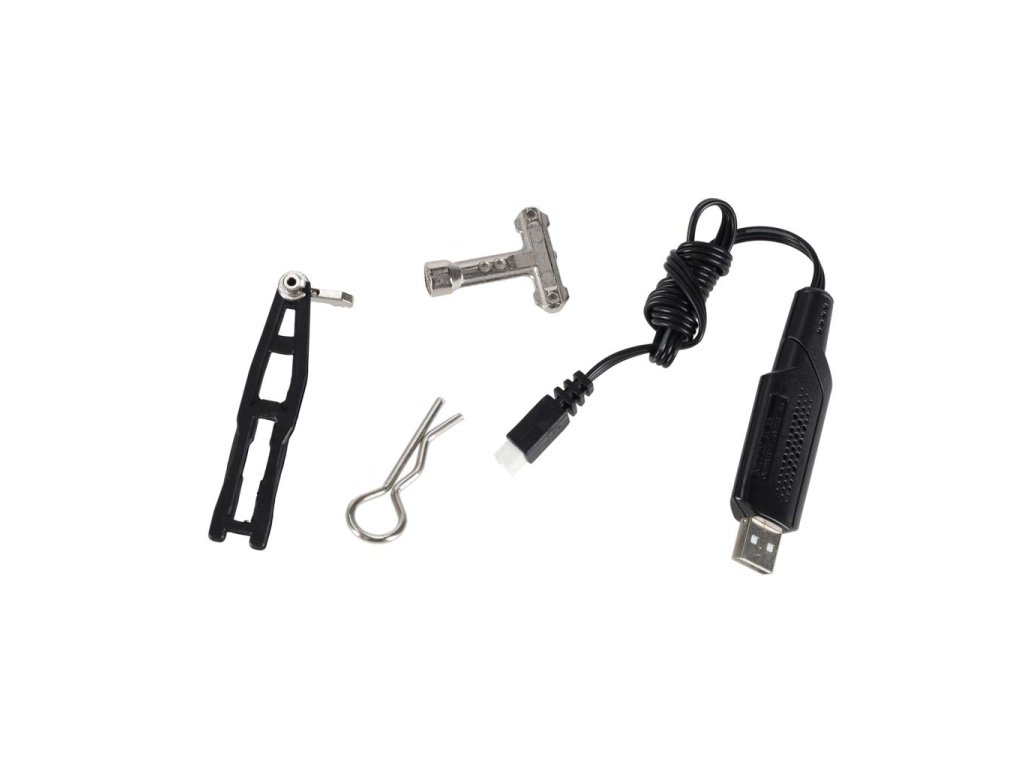 Batéria modelu s kapacitou 1000 mAh Batériu modelu s kapacitou 1000 mAh možno nabíjať pomocou priloženého kábla USB. Toto množstvo energie je zárukou dobrej a dlhej zábavy! Jej napätie je 7,4 V, čo je dostatok energie pre bezkartáčový motor, aby model poháňal rýchlosťou až 52 km/h!