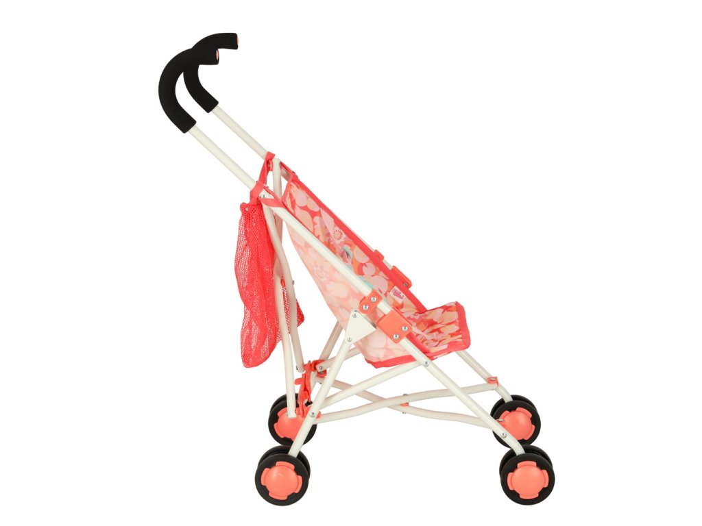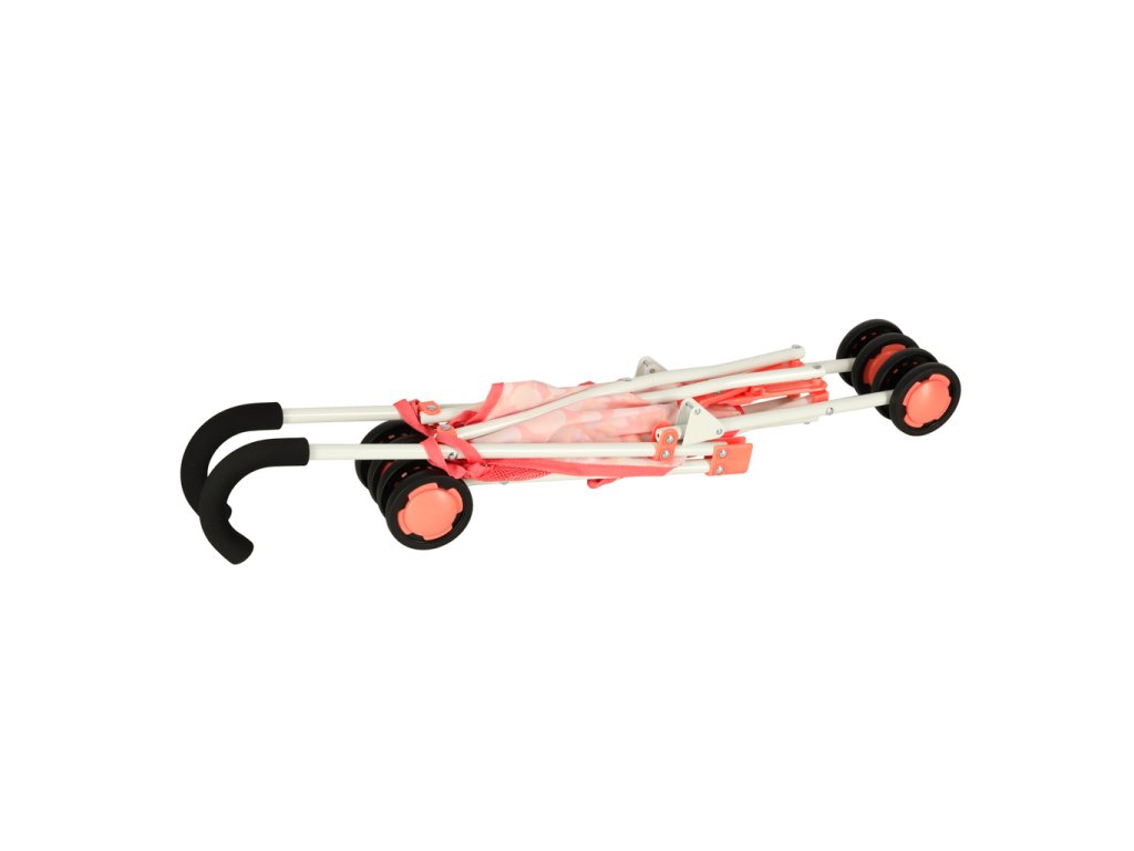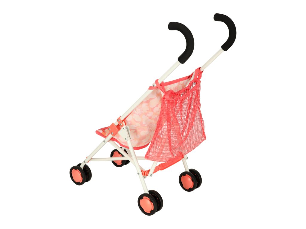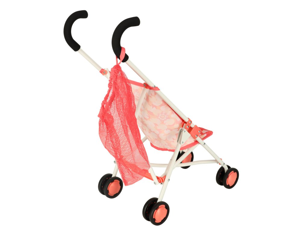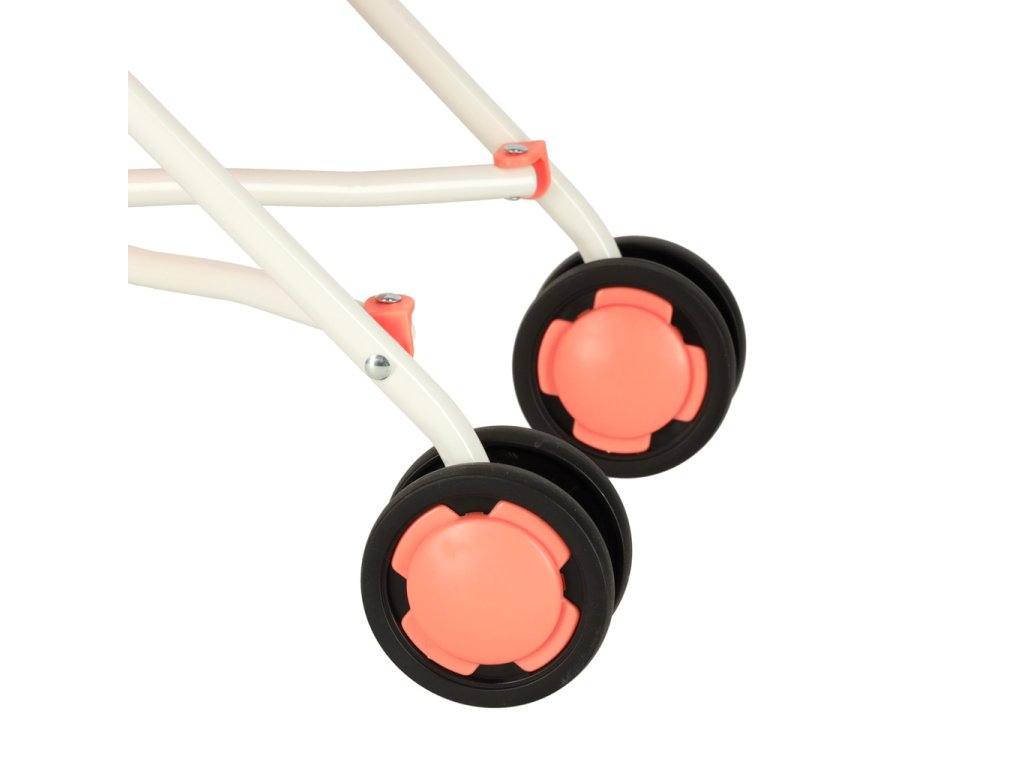 Elegantný ružový vozík s praktickou sieťovanou taškou. Skladný, ľahký a praktický pomocník pre nákupy či výlety. Rozmery: 26x43x62 cm.