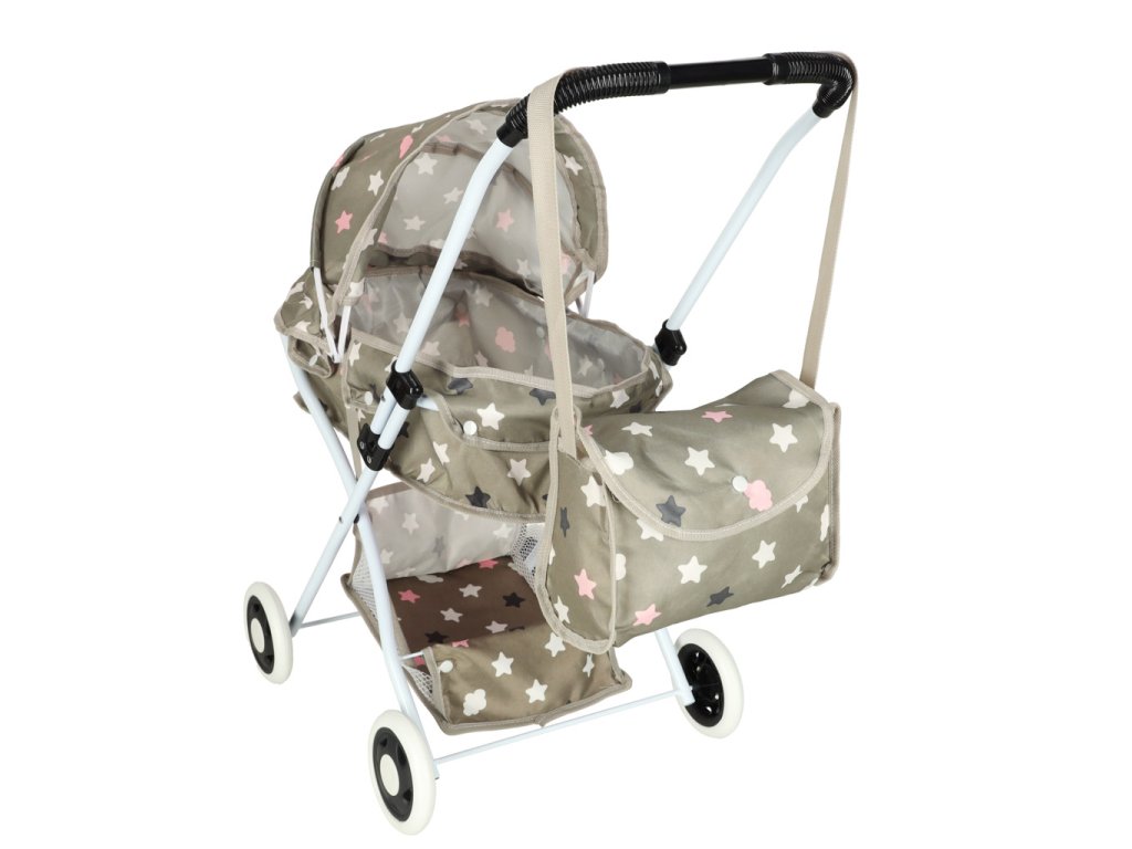 - Vynikajúca imitácia skutočného kočíka- Jednoduché a pohodlné skladanie a rozkladanie, ideálne na skladovanie a prepravu- Tichá jazda - počas hry nevydáva žiadny hluk, vďaka čomu je vhodný na používanie doma- Penové kolieska - ľahké, odolné a poskytujú hladkú jazdu na rôznych povrchoch- Štýlový dizajn - béžová farba s farebnými hviezdičkami mu dodáva roztomilý a dievčenský vzhľad- Praktická taška v balení - umožňuje uložiť príslušenstvo bábiky na jednoduché hranie- Ľahká konštrukcia - ľahko sa riadi aj malým deťom- Stabilita a bezpečnosť - robustná konštrukcia na pohodlné hranie- Blokovacie zariadenie, ktoré zabraňuje náhodnému zloženiu kočíka