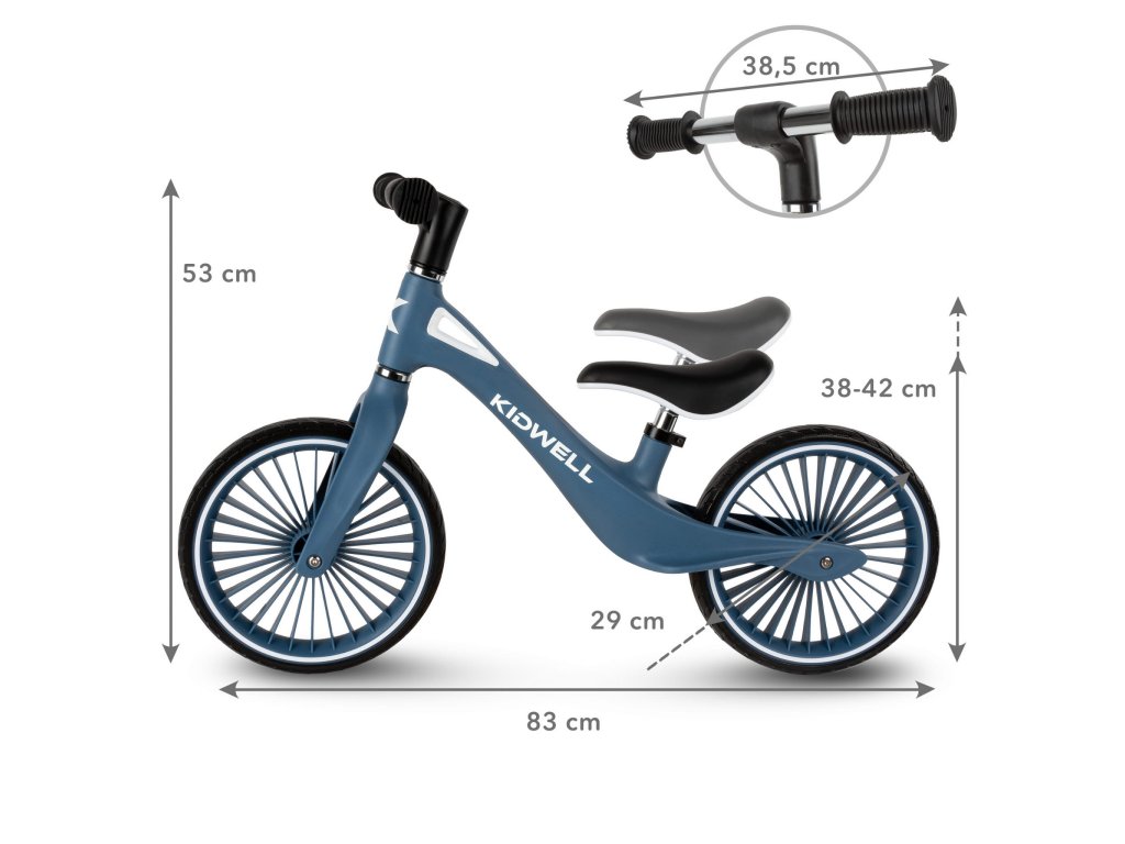 H NIX BALANCE BIKE Zoznámte sa s NIX – balančný bicykel, ktorý kombinuje moderný dizajn, pútavé ráfiky a ľahký, odolný nylonový rám. Vďaka prepracovanému dizajnu si dieťa užije plynulú jazdu a rodič môže bicykel ľahko prenášať, keď sa malý cyklista rozhodne odpočívať. Je to perfektné prvé vozidlo, ktoré pomáha vášmu dieťaťu rozvíjať rovnováhu, koordináciu a hrubú motoriku a pripravuje ho na jazdu na tradičnom bicykli. FRAME Vyrobené z extrémne odolného nylonu, používaného v priemysle na výrobu komponentov odolných voči zaťaženiu, zaisťuje mimoriadnu odolnosť a pohodlie pri používaní. S hmotnosťou len 3,05 kg sa batoľa naučí jazdiť bez námahy a rodič môže bicykel ľahko prenášať, keď sa dobrodružstvo na dvoch kolesách skončí. Celá séria NIX zaujme bohatou paletou farieb, ktoré nielen potešia oko, ale zdôraznia aj individuálny štýl mladého cyklistu. KOLESÁ Polyuretánové pneumatiky kombinujú bezkonkurenčnú trvanlivosť s odolnosťou voči poškodeniu a ich dizajn zaručuje vynikajúcu stabilitu, vďaka čomu bude vaše dieťa ľahšie udržiavať rovnováhu aj počas tých najdynamickejších dobrodružstiev. RIM Prvý bicykel na trhu s unikátnym ráfikom inšpirovaným dizajnom turbíny, ktorý určite upúta pozornosť a odlíši sa od ostatných. VOLANT Balančný bicykel je vybavený plne otočnými riadidlami, ktoré sa v prípade pádu zložia naplocho pod váhu dieťaťa, čím sa minimalizuje riziko zranenia a poskytuje dodatočnú bezpečnosť pri hre. RÚČKY Mäkké, pogumované a protišmykové rukoväte zaisťujú pevné uchopenie a pohodlnú manipuláciu, čím dieťaťu poskytujú plnú kontrolu nad bicyklom pri každej jazde. SEDLO Ergonomické sedlo s mäkkou výplňou zaisťuje vysoký komfort pri jazde a vďaka výškovému nastaveniu rastie bicykel Kidwell NIX s vaším dieťaťom a poskytuje niekoľko rokov vzrušujúcej zábavy. BEZPEČNOSŤ Balančný bicykel Kidwell Nix spĺňa bezpečnostné normy. Výrobok certifikovaný podľa smernice o hračkách a noriem EN 71-1,2,3. Certifikáty sú väčšou zárukou bezpečného zážitku pri hraní. ŠPECIFIKÁCIA: