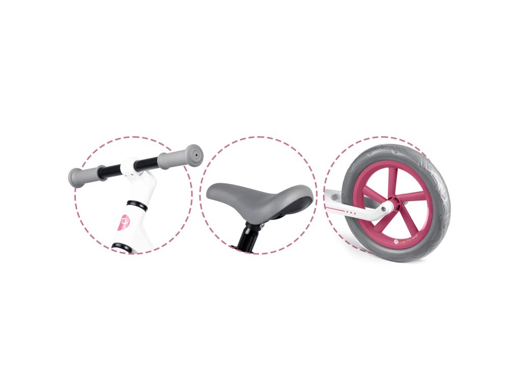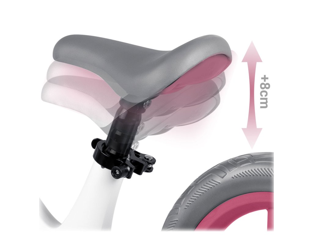 - Dlhšia životnosť: možnosť nastaviť výšku sedadla až o 8 cm umožňuje prispôsobenie bicykel prispôsobený meniacemu sa rastu dieťaťa aby bolo možné bicykel používa dlhší čas.