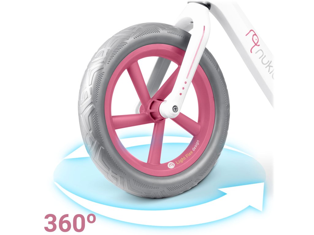 - Kruh: veľké, robustné koleso z peny EVA s odolnou pneumatikou pre stabilnú a plynulú jazdu.