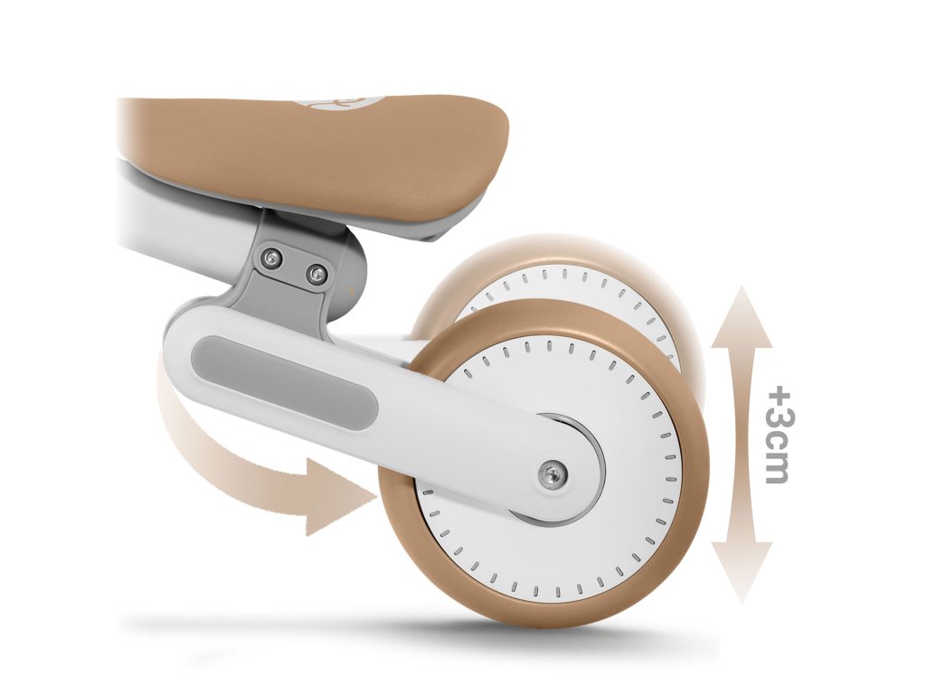 - Lepšie sa hodí: umožňuje dokonalé prispôsobenie výšky sedadla aktuálnej výške dieťaťa, čím sa zvyšuje pohodlie a uľahčuje učenie sa rovnováhy.
