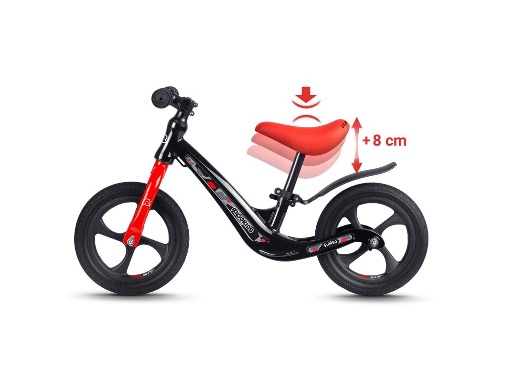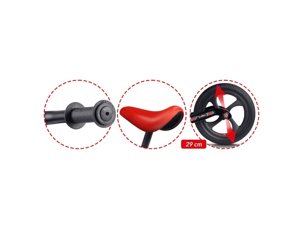 - Dlhšia životnosť: Možnosť nastaviť výšku sedadla až o 8 cm umožňuje prispôsobiť Bicykel prispôsobený meniacej sa výške dieťaťa takže bicykel môže byť používa dlhší čas.