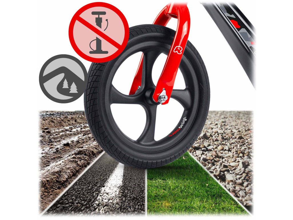 Bez ohľadu na povrch - tráva, asfalt, piesok alebo blato - penové pneumatiky poskytujú bezproblémovú, stabilnú a pohodlnú jazdu. Žiadne prepichnuté pneumatiky, žiadne prestoje! Pena EVA ľahko sa čistí, neabsorbuje nečistoty a zachováva si dobrý vzhľad aj po intenzívnom používaní.