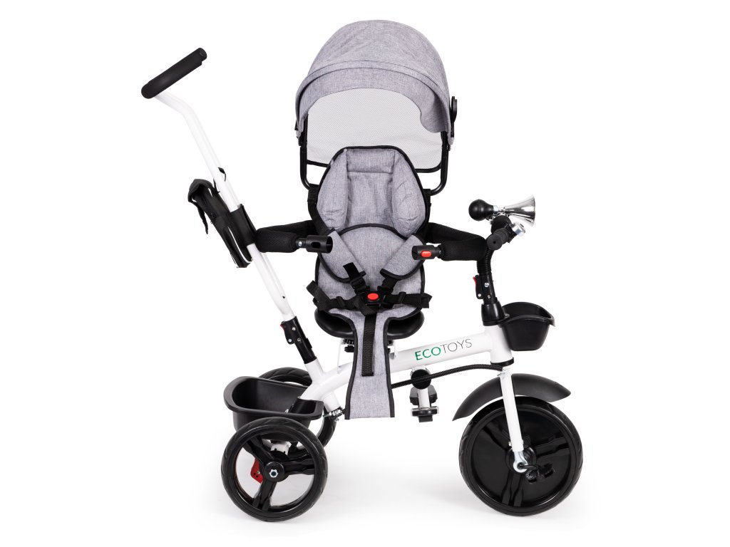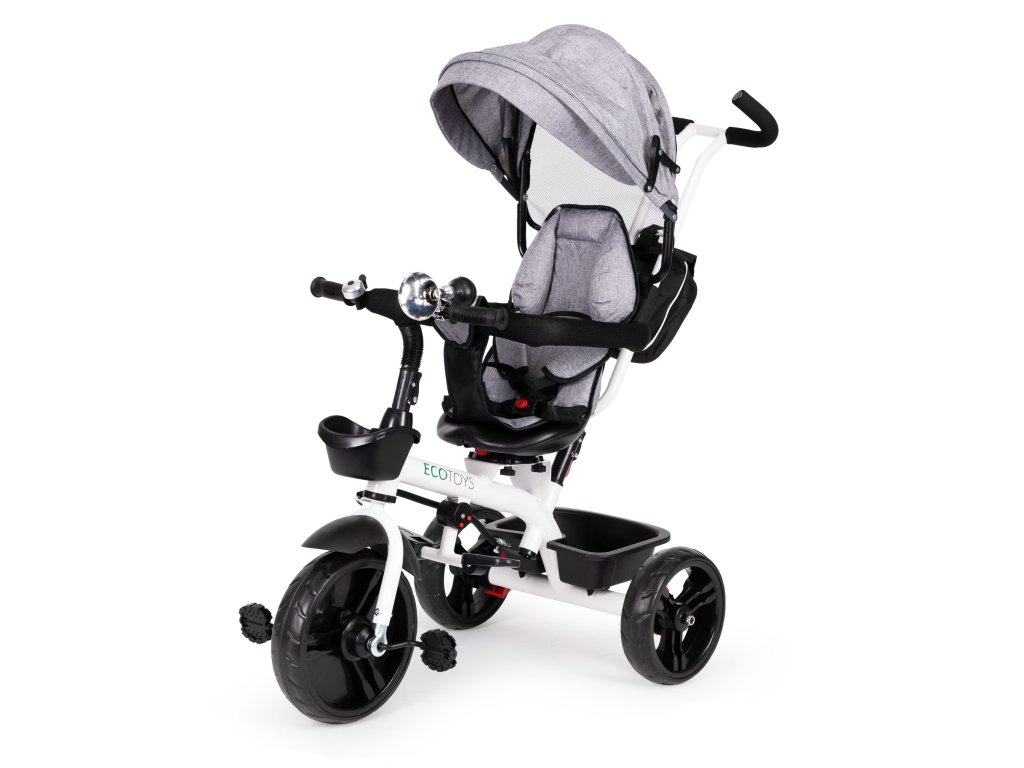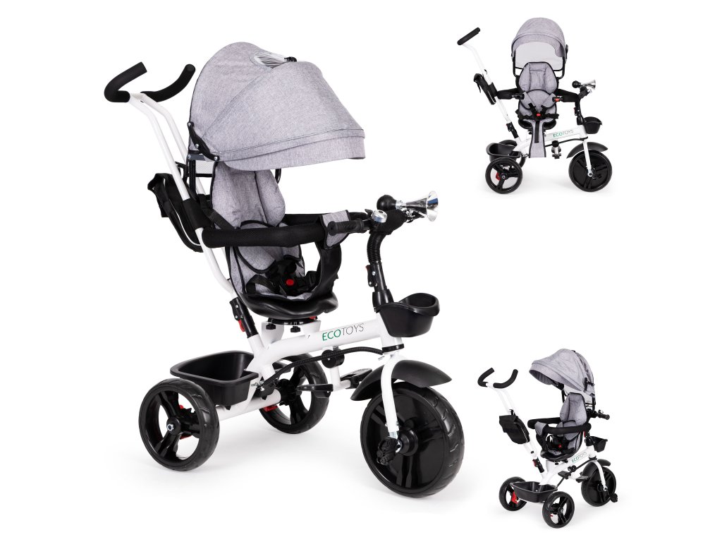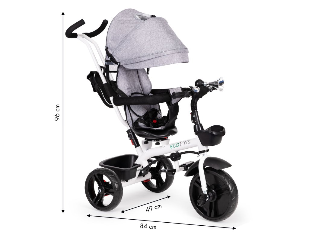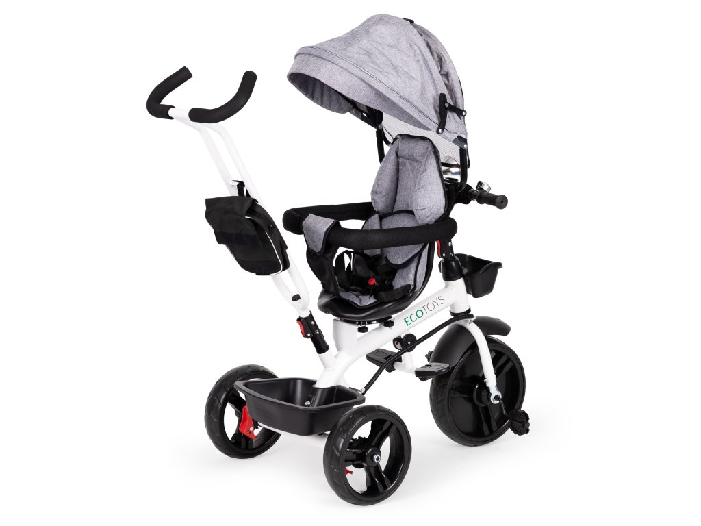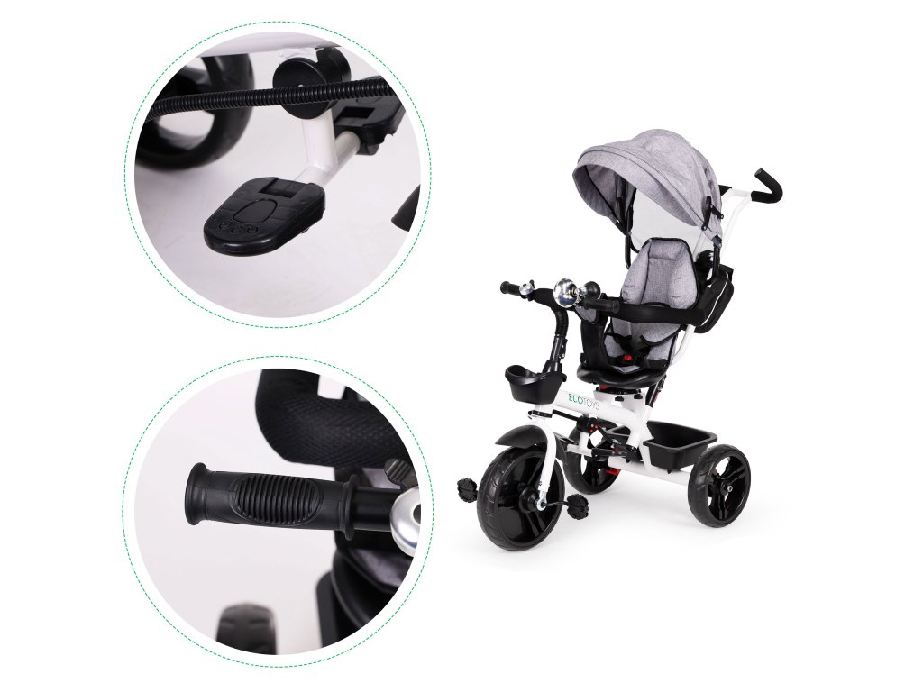 Bicykel ECOTOYS v sebe spája množstvo praktických funkcií, ktoré zabezpečia, aby vaše dieťa pohodlnú a bezpečnú hru. Bicykel má mäkké a pohodlné operadlo aby batoľa pohodlne sedelo a pásy a zábrany zabránia jeho vypadnutiu zo sedadla. Skladací baldachýn chráni pred dažďom a slnkom. Špeciálne tvarovaný rám a otočné sedadlo uľahčuje nastupovanie najmladšie deti.