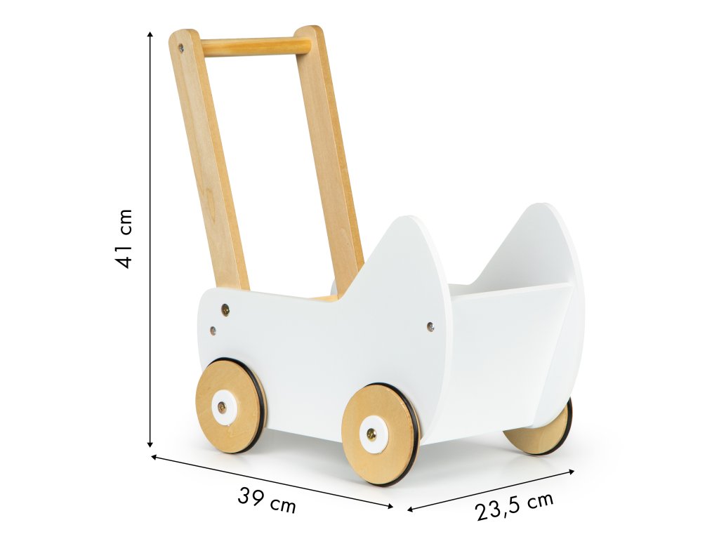 Vozík je celá vyrobená z dreva a natretá farbou bezpečnou pre deti. Stabilná konštrukcia neobsahuje ostré hrany a nebezpečné prvky takže sa nemusíte obávať o bezpečnosť svojho dieťaťa pri hre.