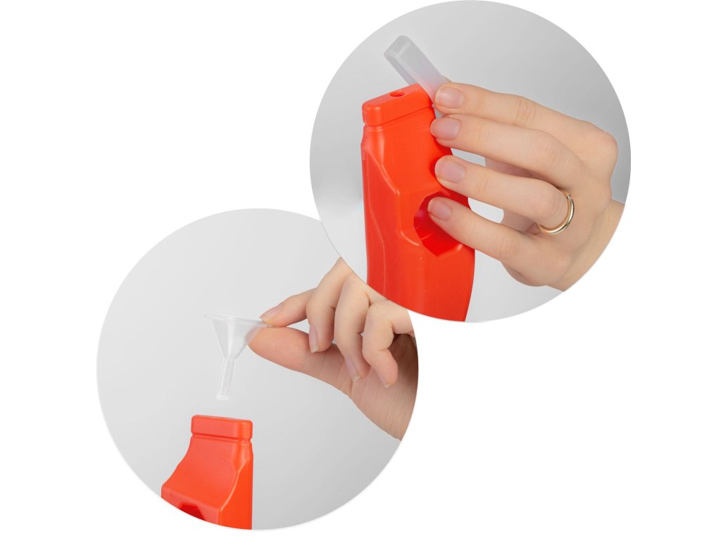 Vodu možno naliať do nožičiek tlačného zariadenia (pomocou priloženého lievika) a potom otvor uzavrieť silikónovým uzáverom. Voda bude tlačiareň zaťažovať dodatočnou hmotnosťou, čím sa pridá štrukturálna stabilita.
