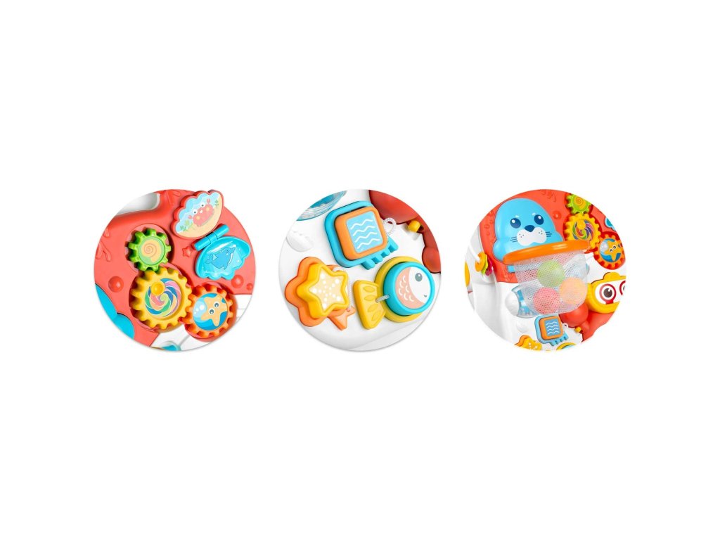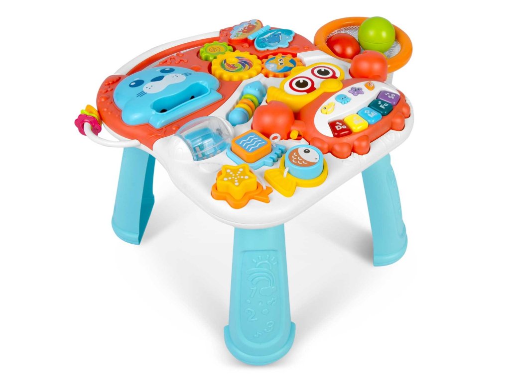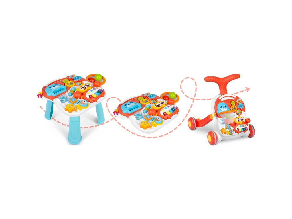 Okrem lekcie chôdze, výrobok je ideálny pre učenie čísel, farieb a tvarov. Odnímateľný panel (na odstránenie panelu je potrebné podkopnúť západku v zadnej časti konštrukcie) možno použiť ako výučbovú tabuľu a po pridaní nožičiek sa rýchlo zmení na do vzdelávacej tabuľky.