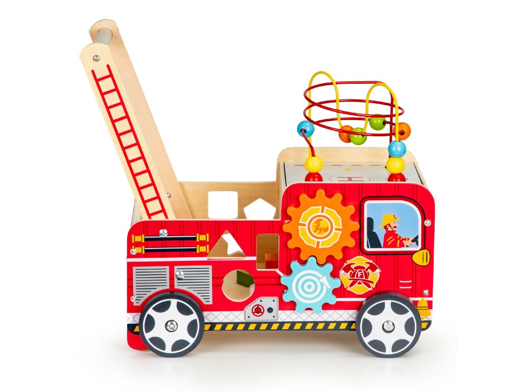 Drevené chodítko Hasičské vozidlo – edukačné s kockami a prepletankou 3+