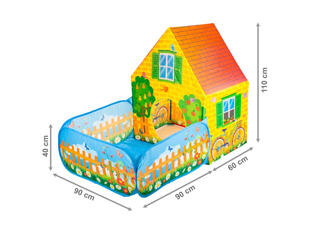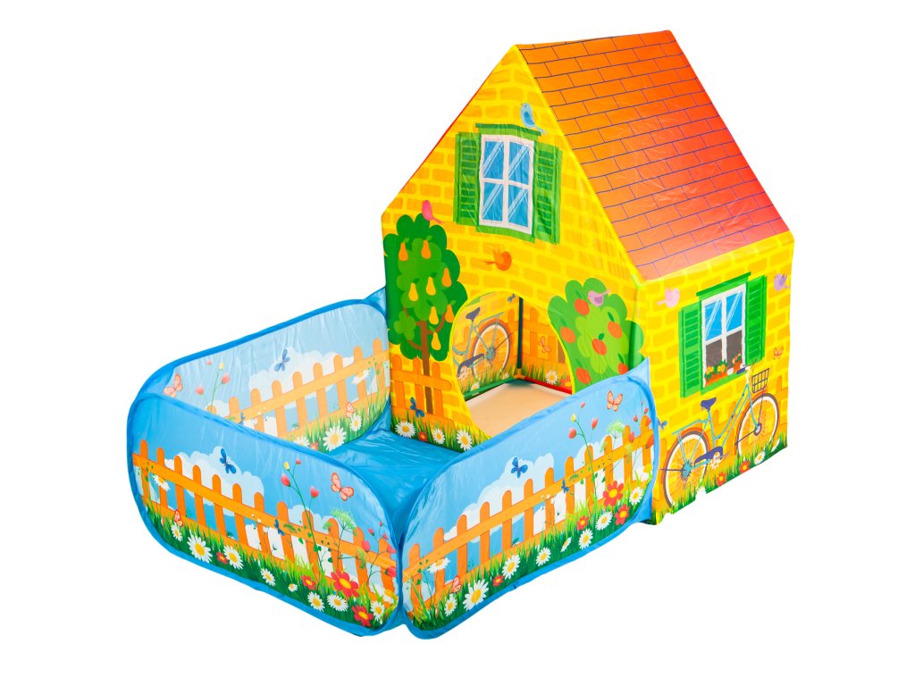 Výrobok má tvar domčeka - má striešku. Celý motív stanu je štylizovaný ako farma so záhradou, ktorá slúži ako suchý bazén pre deti. Stan je praktický a ľahko sa skladá. Vďaka svojmu ľahkému rámu, ľahko sa prenáša z miesta na miesto.