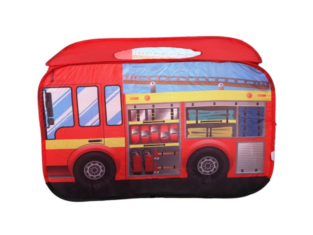 Výrobok má tvarhasičské auto - má východ v streche, aby dieťa mohlo simulovať hasenie požiaru. Stan je praktický a ľahko sa skladá. Vďaka ľahkému rámu, ľahko sa prenáša z miesta na miesto.
