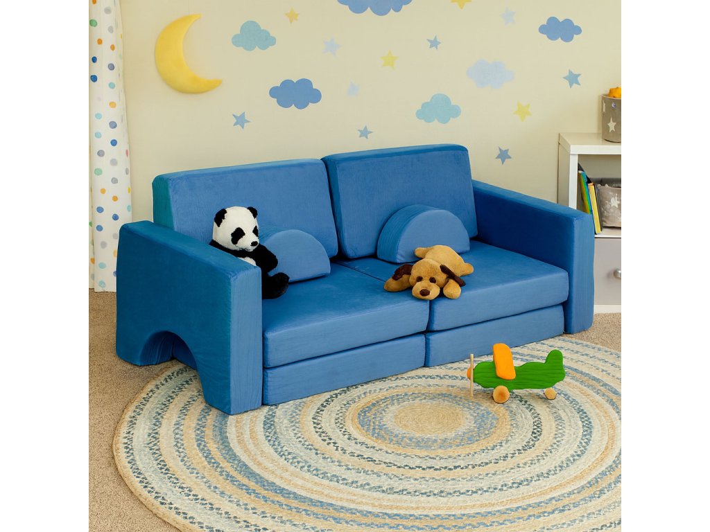 Modulárna rozkladacia pohovka pre deti veľká 2-miestna DIY 10 mäkkých vankúšov - modrá ECOTOYS