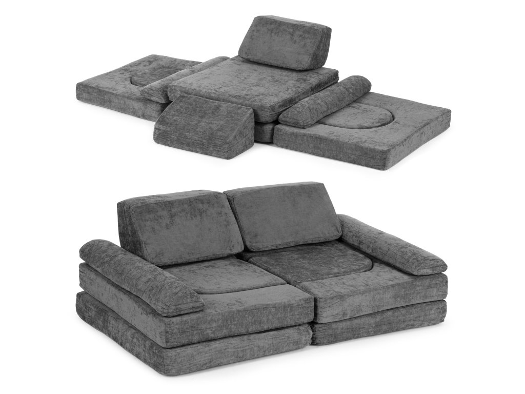 Veľká modulová detská pohovka 10 dielov, sivá pre 2 deti
