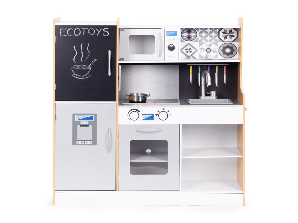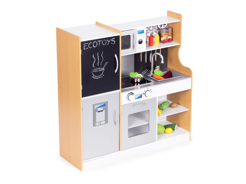 Kuchyňa ECOTOYS je nepochybne najlepší darček, ktorý môžete dať svojmu dieťaťu. Umožňuje vám presunúť sa do sveta dospelých a prevziať úlohu šéfkuchára, hra na hrdinov je veľmi zábavná a zároveň učí základy prípravy jedál, rozvíja predstavivosť a manuálnu zručnosť.