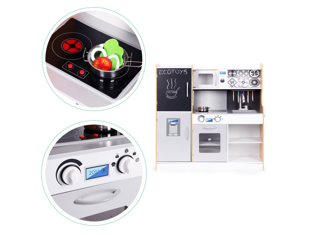 Detská drevená kuchynka ECOTOYS s LED, zvukom a tabuľou