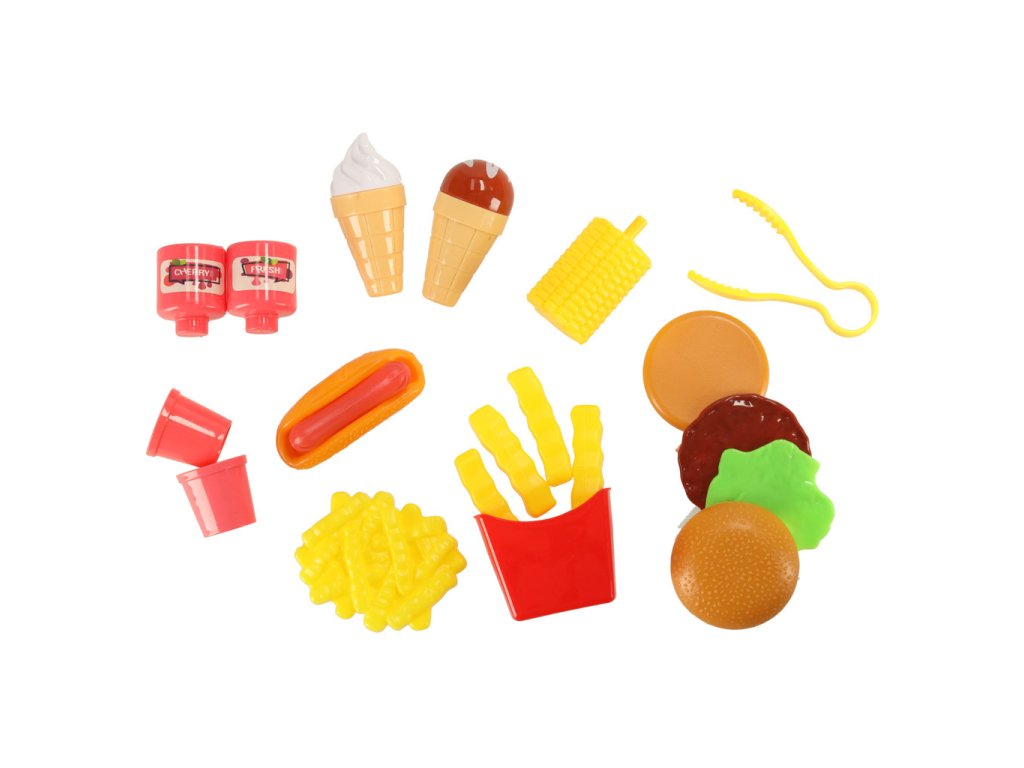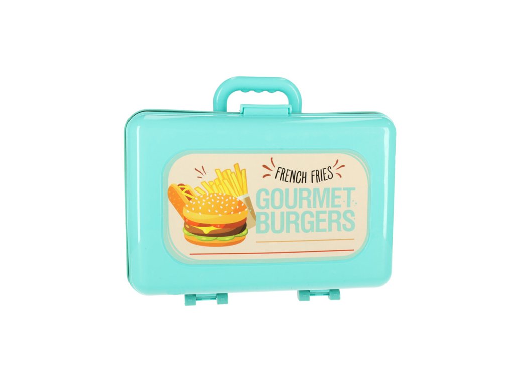 DETSKÁ KUCHYNKA V KUFRÍKU FAST FOOD HAMBURGER SET ZMRZLINA HRANOLKY 55CM