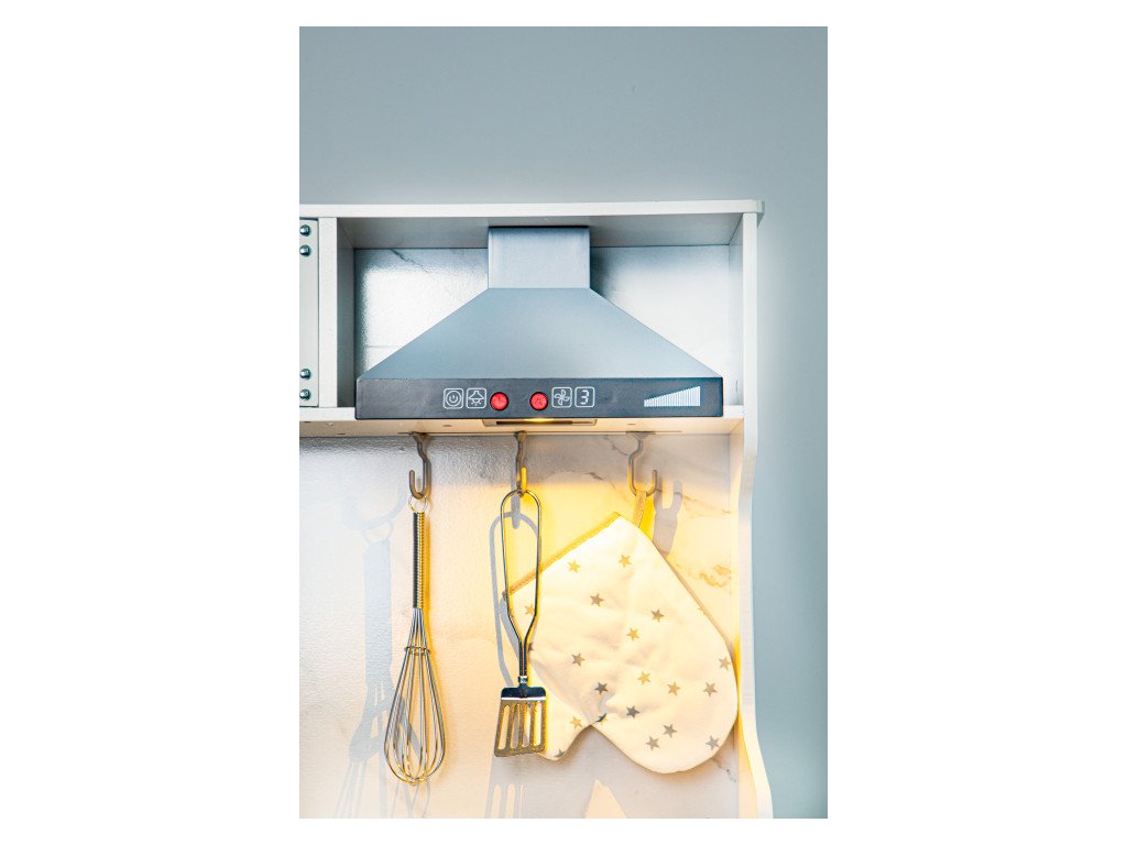 - Rovnako ako v skutočnej kuchyni je nad horákmi kapota ktorá má podsvietenie a vydáva charakteristický zvuk bežiaceho ventilátora.