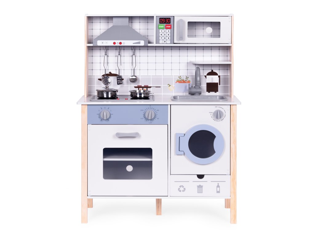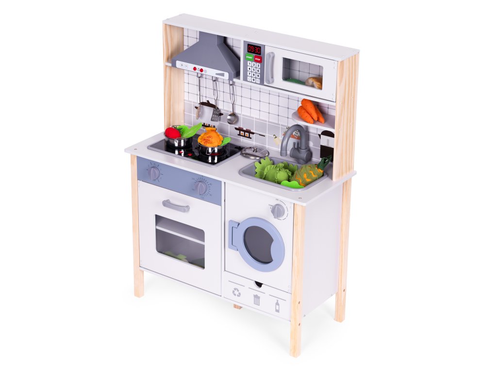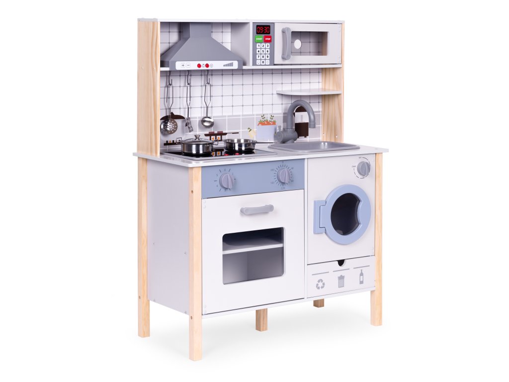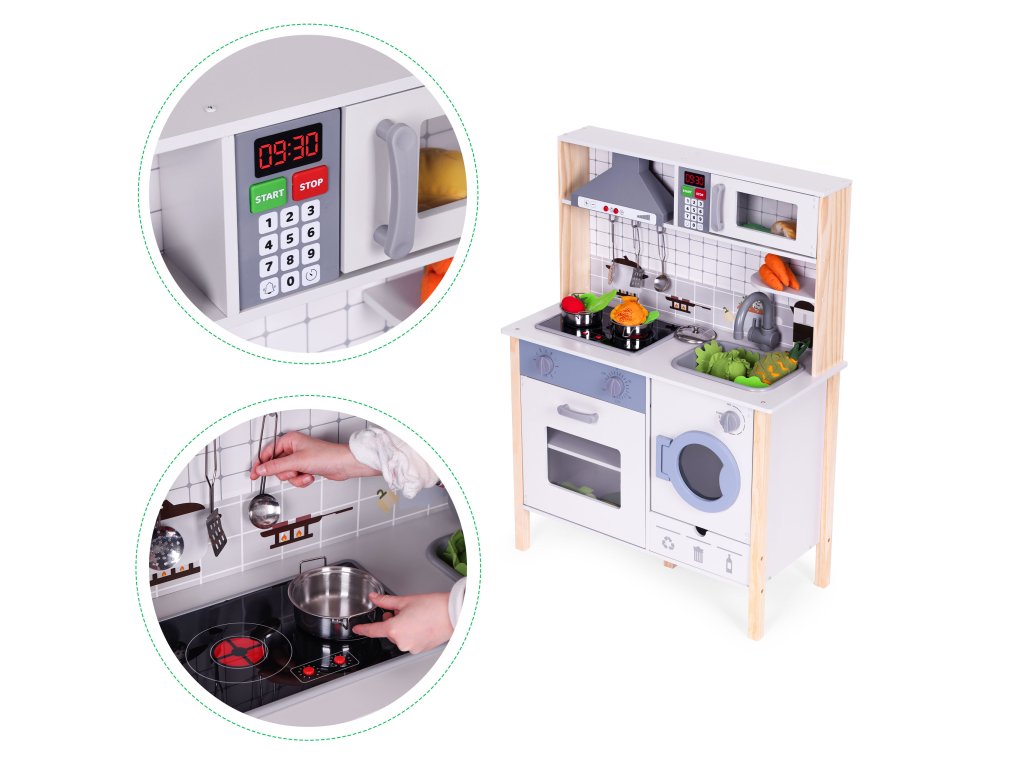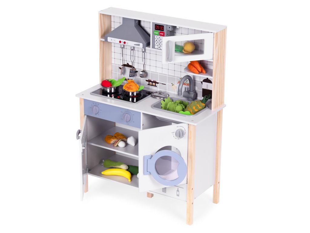 Drevená detská kuchynka ECOTOYS s LED, zvukmi a práčkou