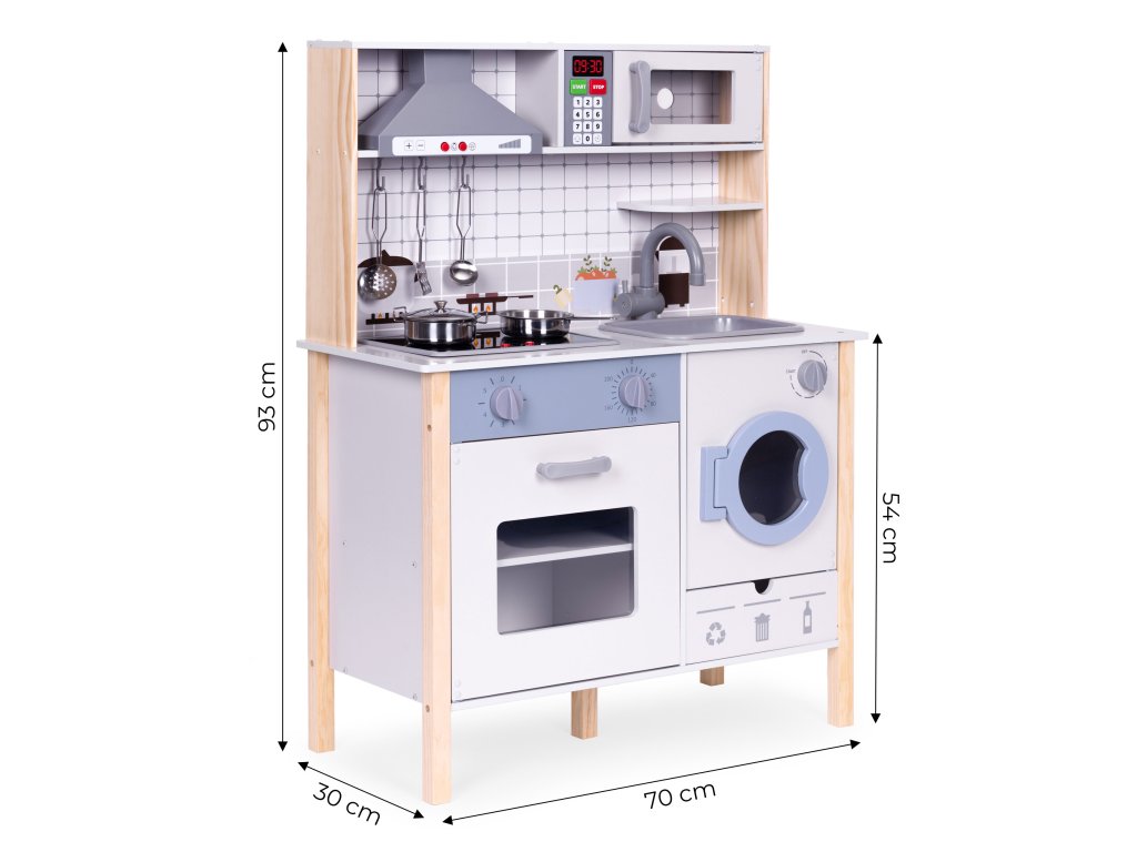 Objavte zábavu pri varení s drevená kuchyňa od ECOTOYS. Nie je to len hračka - je to spôsob, ako rozvoj kreativity, manuálnych zručností a poznávania okolitého sveta. Ideálne na hranie rolí, učí deti základom varenia a prípravu jedál bezpečným a inšpiratívnym spôsobom. Ideálne pre na hranie osamote aj s priateľmi, čím podporuje rozvoj sociálnych zručností. Vďaka robustnej konštrukcii a nádherným farebným povrchovým úpravám je kuchyňa vyzerá skvele v detských izbách alebo herniach.
