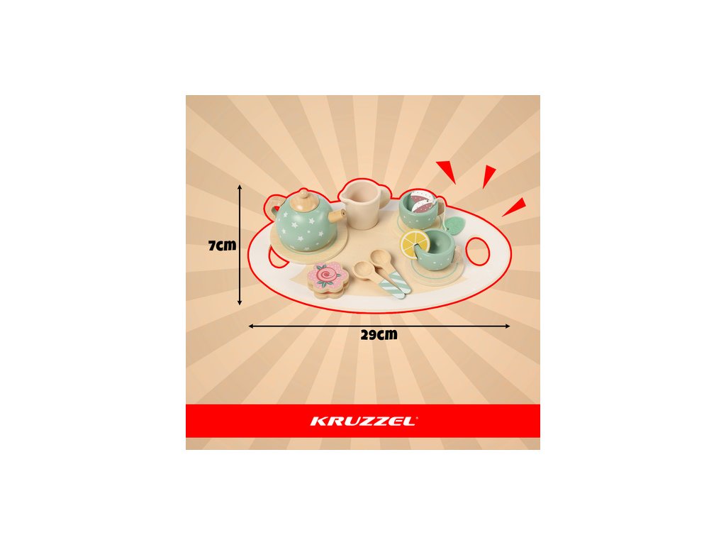 Drevená čajová súprava Kruzzel - detská kuchynská sada - podnos, kanvice, hrnčeky, lyžičky - hracie doplnky - bezpečné drevo - perfektný darček