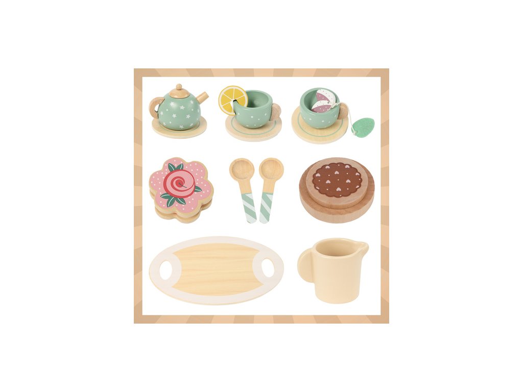 Drevená sada Kruzzel s čajovým večierkom, ktorá učí a teší