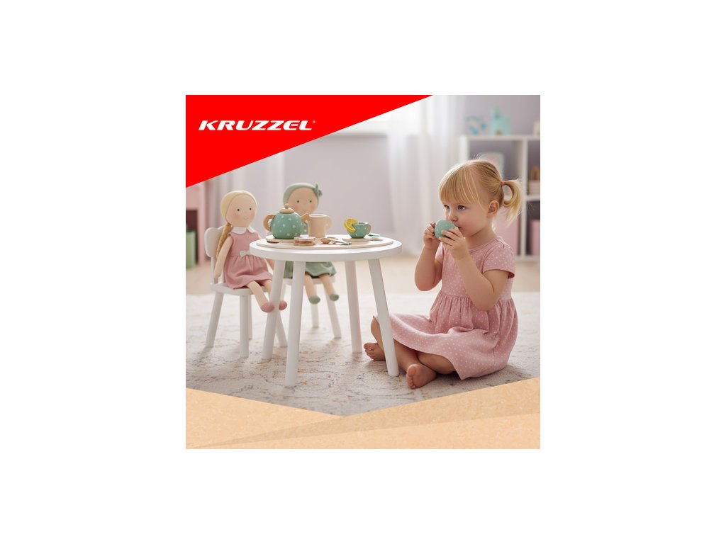 Premeňte každodenné hranie na kúzelnú párty! Drevená čajová sada Kruzzel umožňuje deťom prevziať rolu hostiteľa, rozvíja fantáziu a učí ich slušnému správaniu a sebavedomiu bez obrazoviek, ale s úsmevom a radosťou. Bezpečné, hladké drevo so zaoblenými hranami poskytuje pocit pohodlia a istoty, že každé hranie je nielen príjemné, ale aj bezpečné.