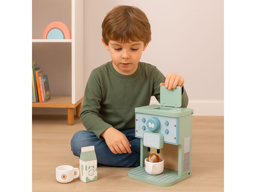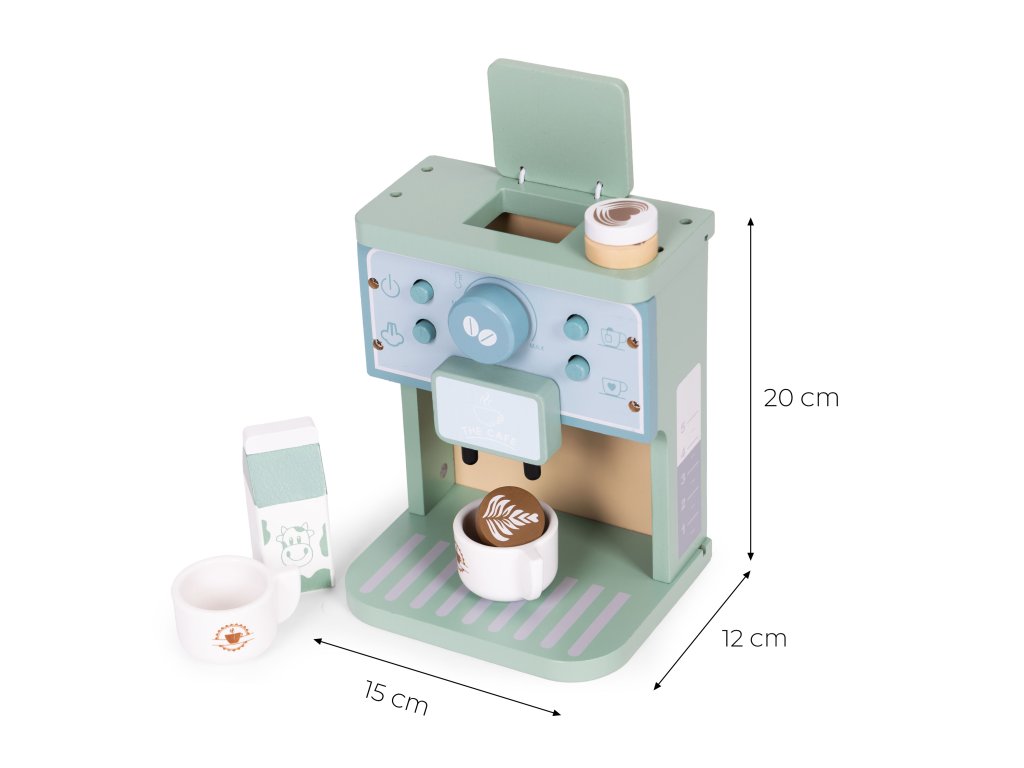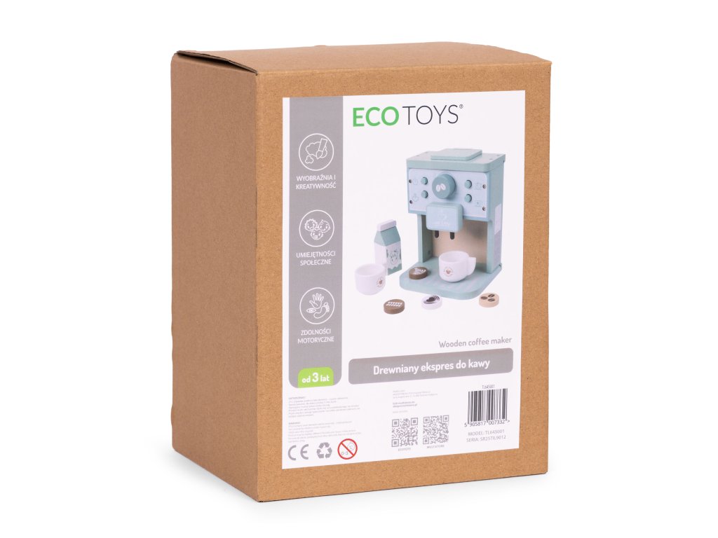 Drevený kávovar od spoločnosti ECOTOYS umožňuje deťom hrať scénky z každodenného života dospelých - podávať "kávu" rodičom, viesť vlastnú kaviareň alebo pohostiť plyšových hostí šálkou latte. Je to nielen skvelá zábava, ale aj skvelá príležitosť na rozvoj predstavivosť, sociálne zručnosti a motorická koordinácia. Všetky prvky súpravy sú vyrobené z odolného dreva a vybavené zaoblené hrany čo zaručuje bezpečnú hru. Vďaka estetický vzhľad a robustnou konštrukciou je hračka ideálna na použitie doma aj v detskej izbe alebo herni.