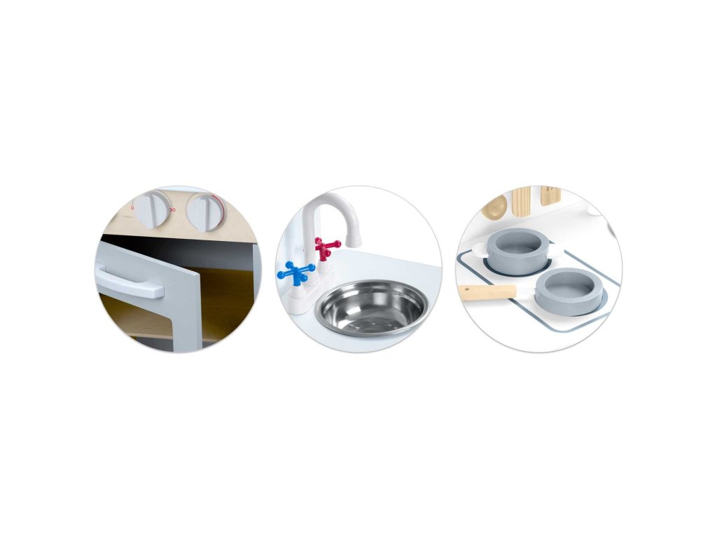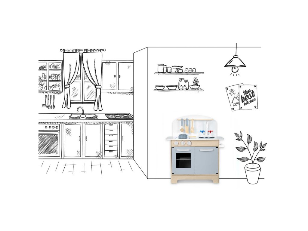 Táto kuchyňa je sen pre každého malého kuchára. Otváracie dvierka, pohyblivé gombíky a rôznorodý riad poskytnú hodiny zábavy.