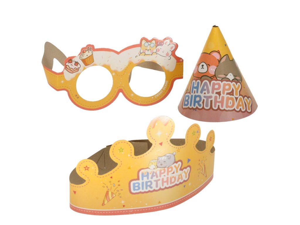 - papierové doplnky - poháre, narodeninový klobúk a koruna