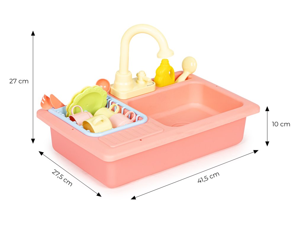 Spojenie hry s rozvojom ich zručností je najlepšou formou učenia, vďaka ktorej je hra nielen pútavá, ale aj má pozitívny vplyv na manuálne zručnosti, rozvíja predstavivosť a učí správnym návykom. Dbajte na vývoj svojho dieťaťa a vyberajte hračky, ktoré budú mať vplyv na jeho vedomosti a rozvoj. Pred vami je jedna takáto hračka - umývadlo s kohútikom, z ktorého tečie voda. S touto hračkou si deti môžu vyskúšať umývanie riadu, precvičia si koordináciu rúk a očí a naučia sa umývať riady, a predovšetkým bude mať skvelá zábava pri hre s vodou.