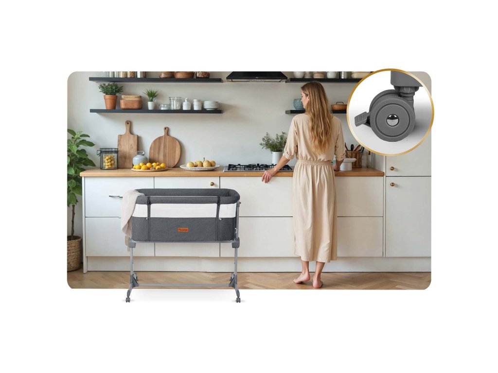 Vďaka kolieskam môžete postieľku premeniť na pohodlnú mobilnú postieľku - nech ste kdekoľvek!