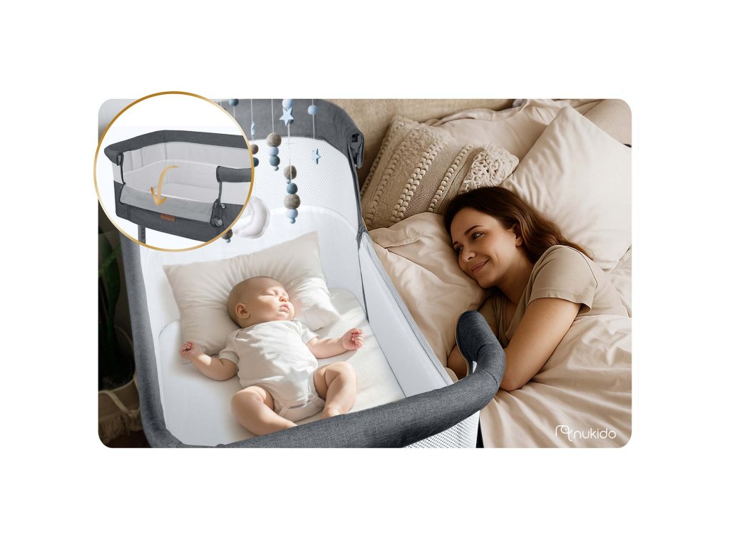 Detská postieľka od dôveryhodnej značky NUKIDO poskytuje dieťaťu bezpečný priestor na spanie. Dieťa je blízko rodičov čo uľahčuje budovanie vzťahov a poskytuje pocit bezpečia.